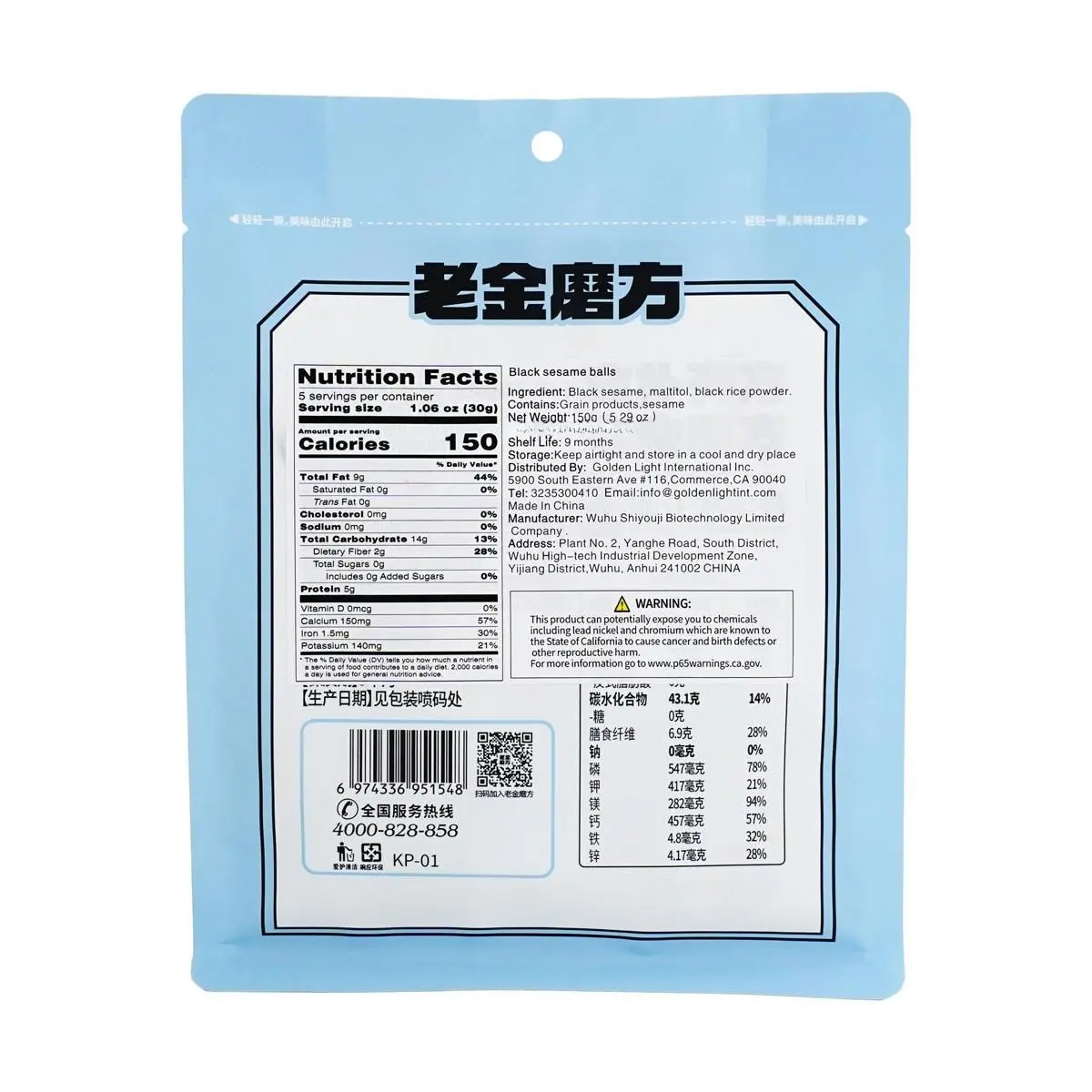 5. Lao Jin Mofang Black Sesame Balls 150g - Real Sesame Seeds, High Calcium, High Fiber, Clean Ingredients