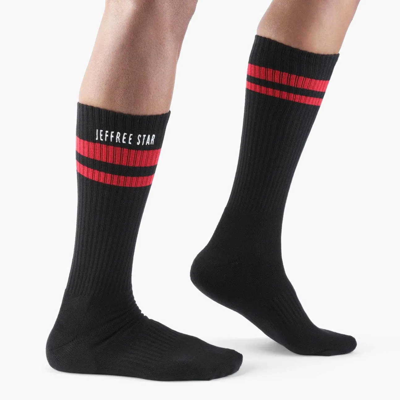 Jeffree Star socks love them. The material is a heavy material and very comfortable.