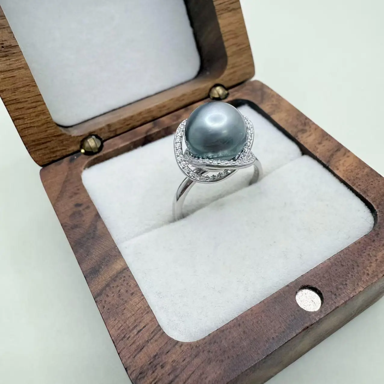 5. PEARLISM Bird Nest Design Pearl Set Seawater Black Tahitian (8.5-9.5mm) ASBS001