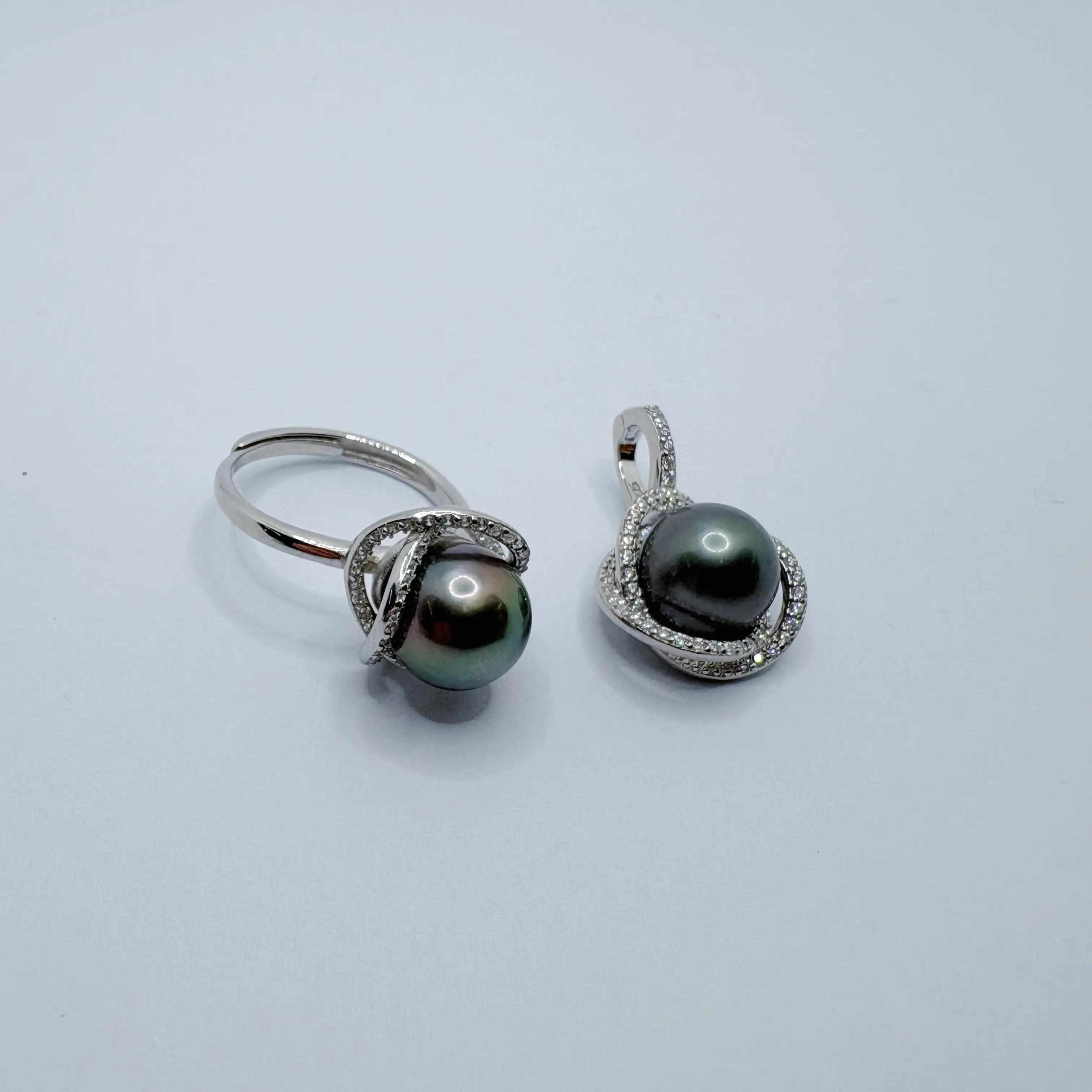 PEARLISM Bird Nest Design Pearl Set Seawater Black Tahitian  (8.5-9.5mm) ASBS001