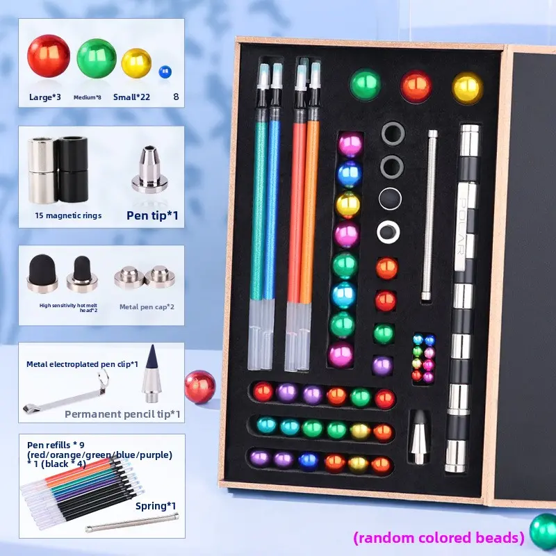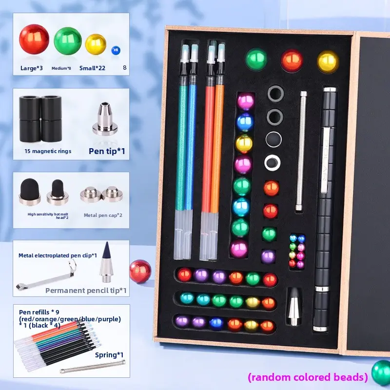 There are various sets to choose from. Small sets typically include 13 magnetic rings, 12 steel balls, 3 pen refills, and 2 capacitor heads. Large sets have more magnetic rings, steel balls, and pen refills to meet different user needs