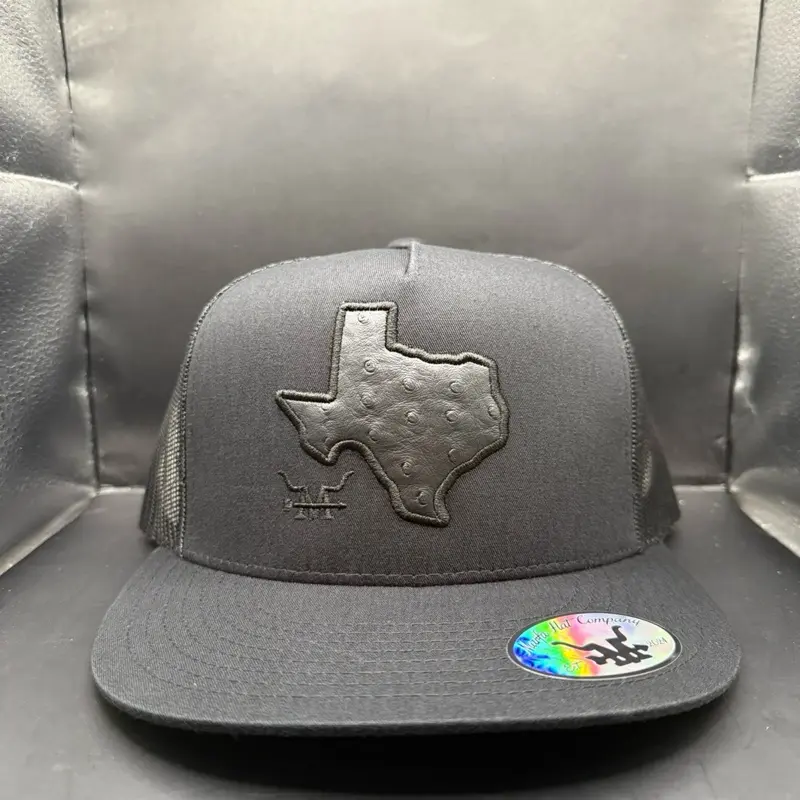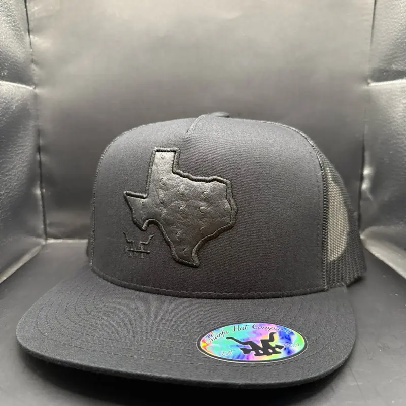 Black Texas Ostrich Patch Hat - Snapback with Texas Outline Design