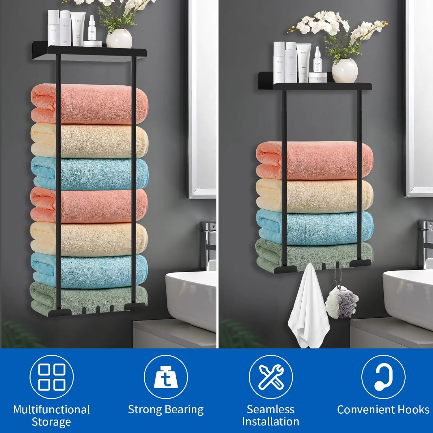 Wall Towel Rack 🛁- Clean and Orderly Bathroom Space: Hommtina towel rack helps create a tidy bathroom environment.- Space Saving: Ideal for limited storage spaces, maximizing space efficiency.- Category Management: Convenient for managing and using towels in different categories.