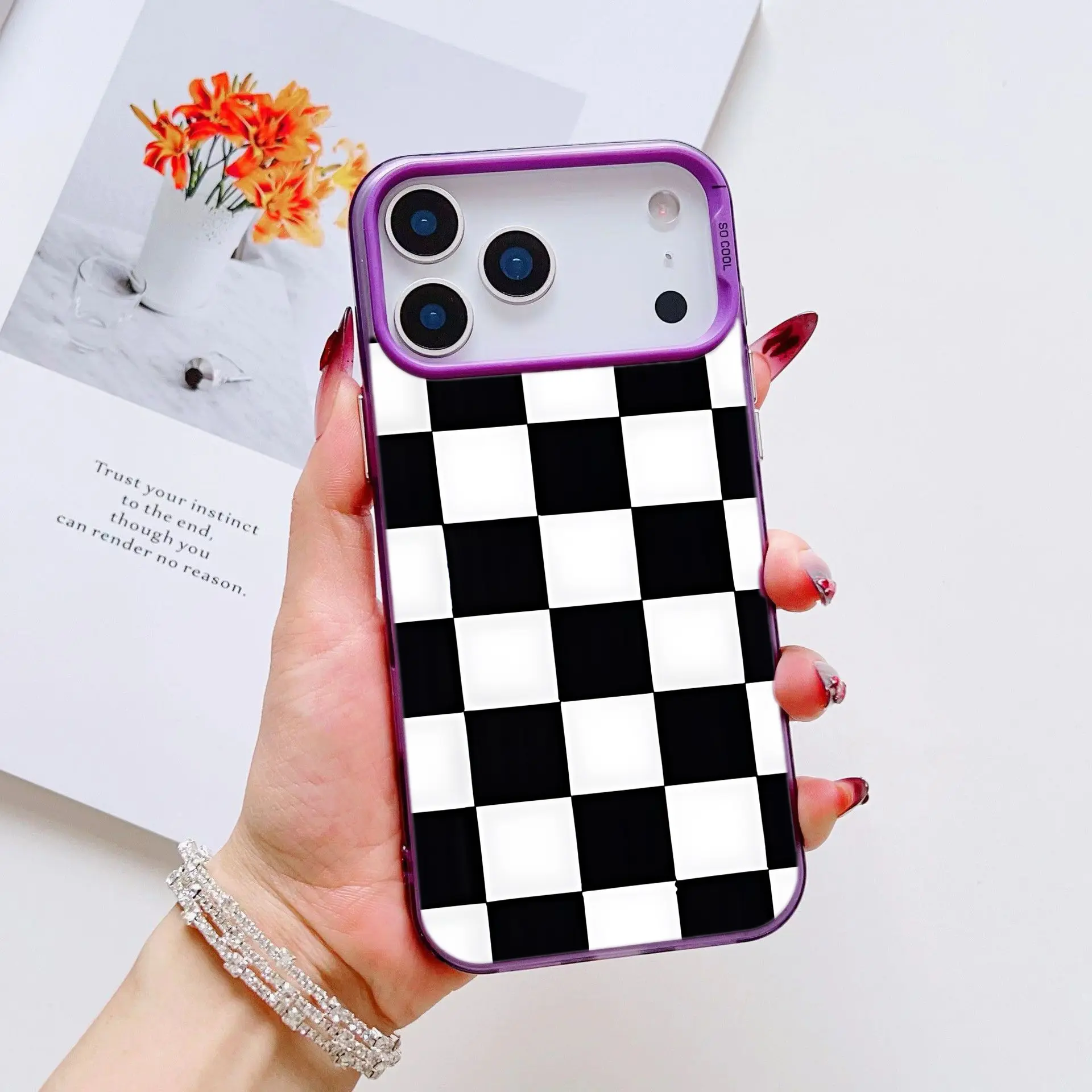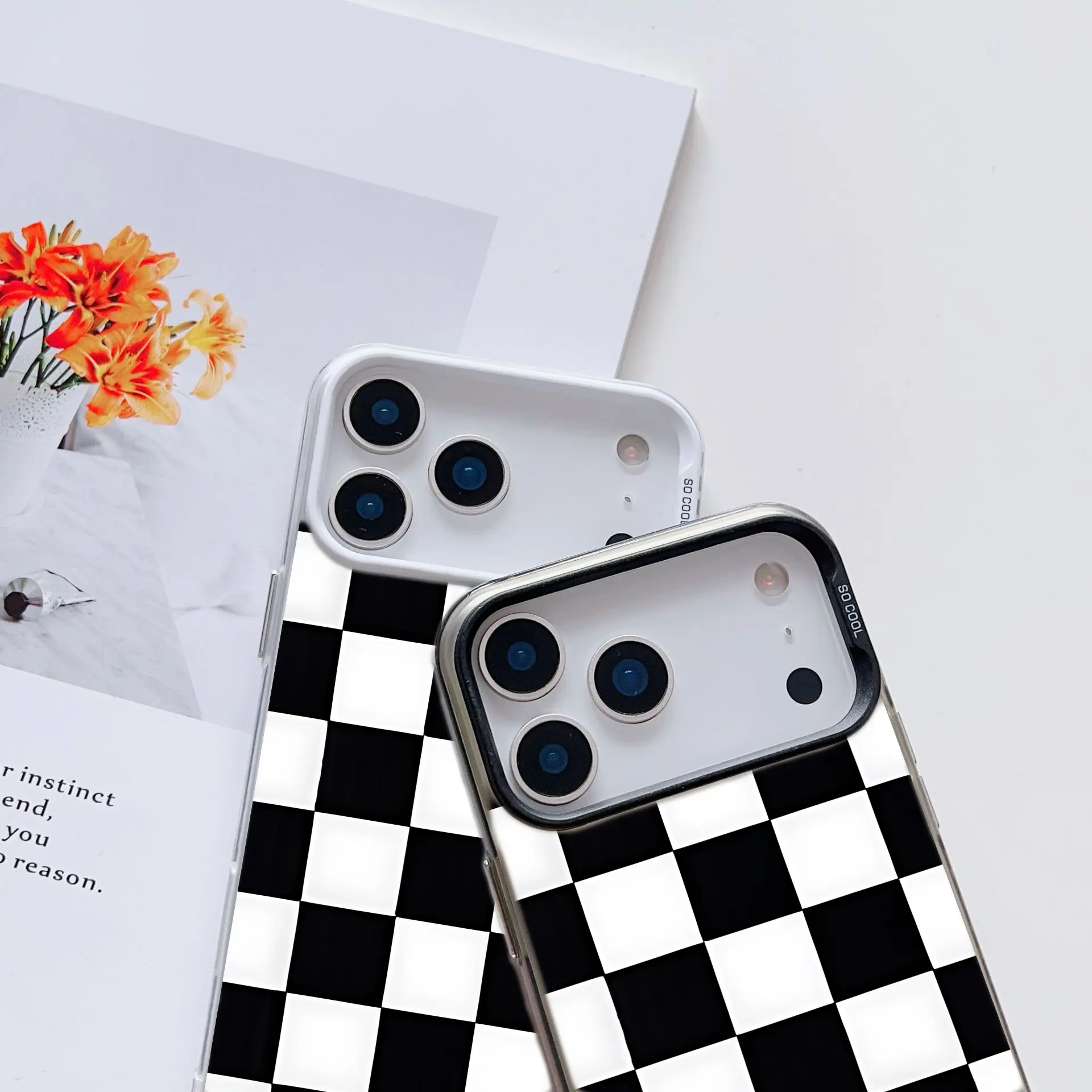 Black White Checkered Drop-proof Phone Cases for iPhone 17 Pro Max 17 Air 17Pro 16 15 14Plus 13 12 11 XS Simple and Stylish Smartphone Shockproof Anti-Drop Protection Protector