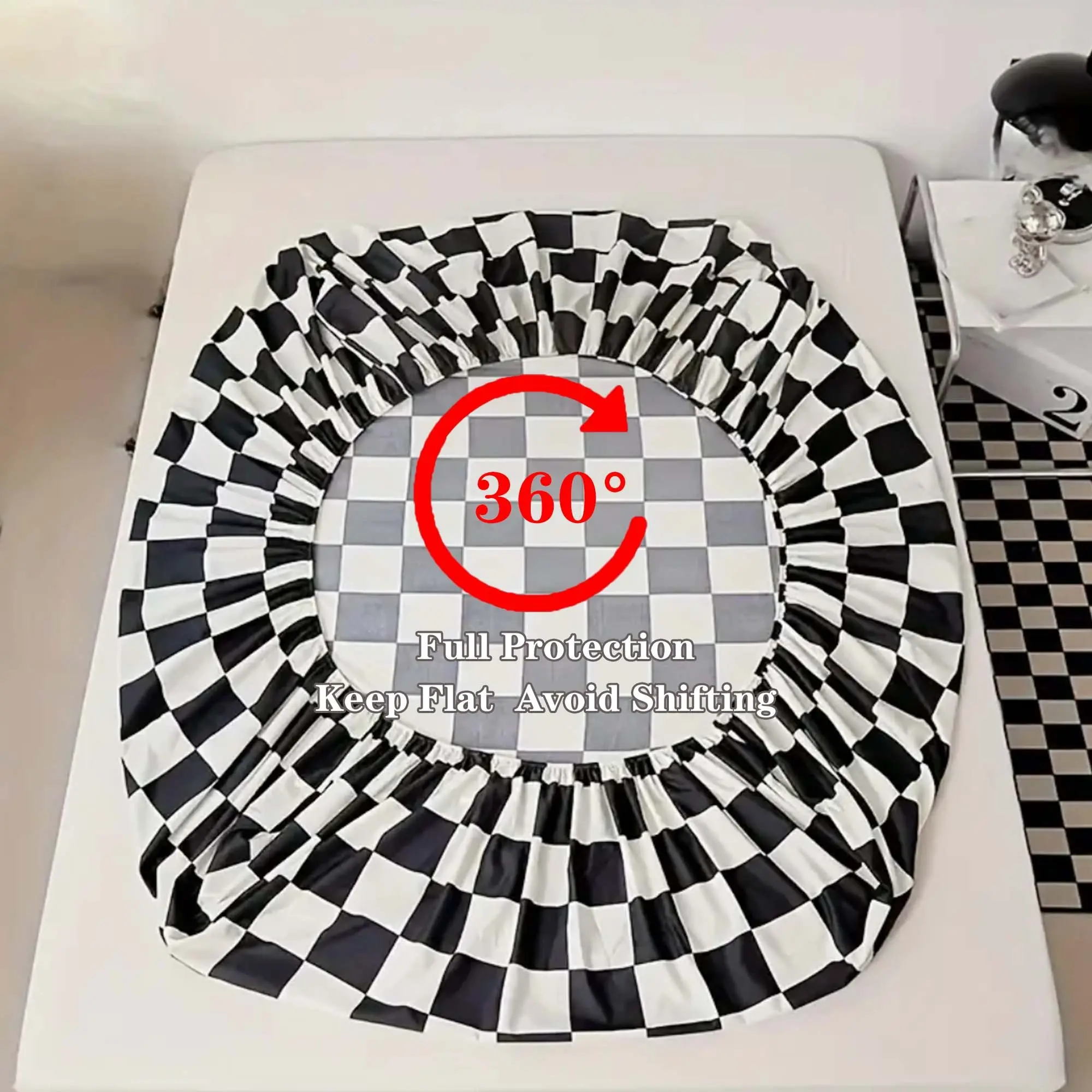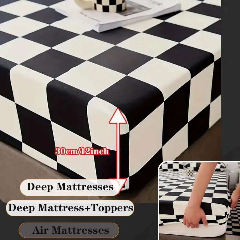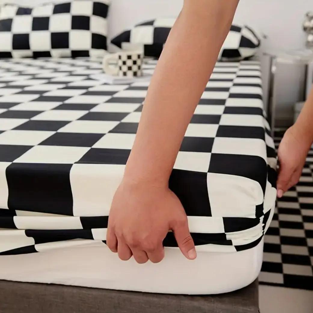 Black & White Checkerboard Premium Polyester Bedding Set, Checkered Geometric Pattern, Includes 1 Fitted Sheet and 2 Pillowcases, No Insert Durable Comfort Design, Modern Style Perfect Gift