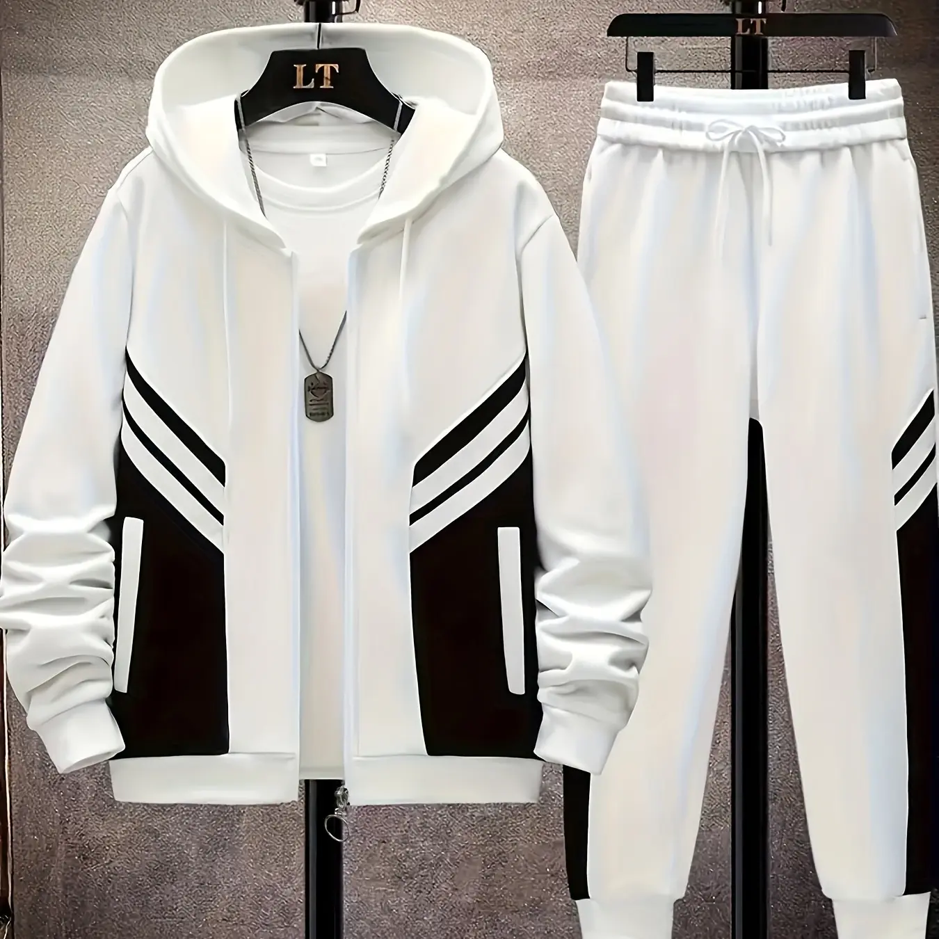 Black and White Colorblock Hooded Sports Set Trendy Versatile Comfortable Casual Wear High-End Feel #menswear #mensoutfit #mensfashion