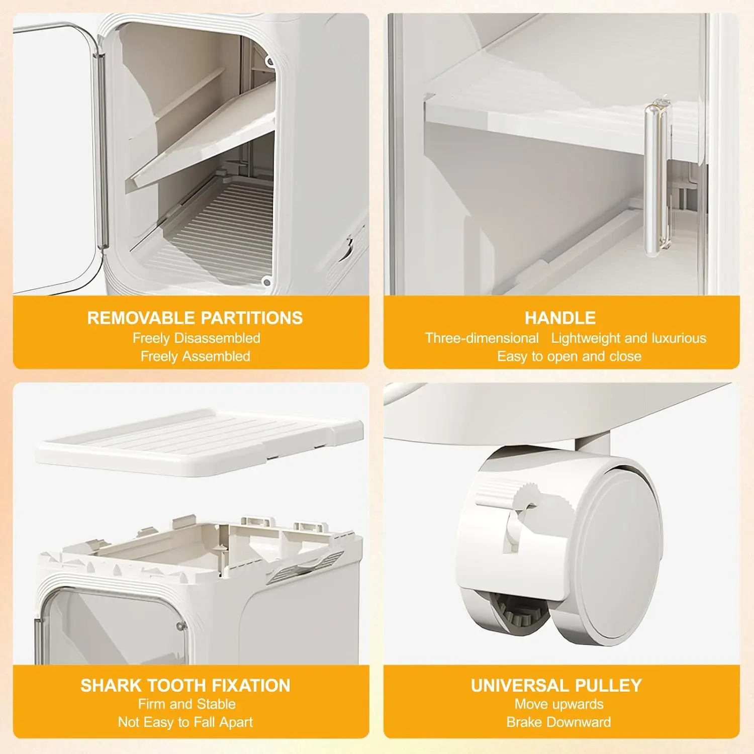 ·Tool-free installation, foldable and stackable, easy to store when not in use; with magnetic door, dust-proof and anti-fall