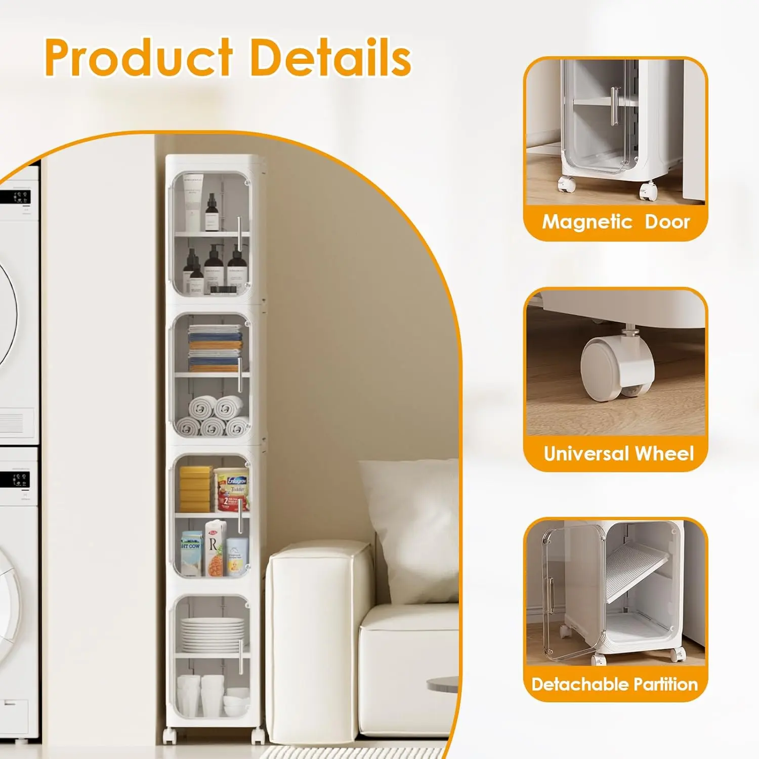 ·Suitable for narrow gap storage, toilet side, kitchen corner, bedroom corner, etc.; can be used as shoe rack, daily necessities storage cabinet, small item storage