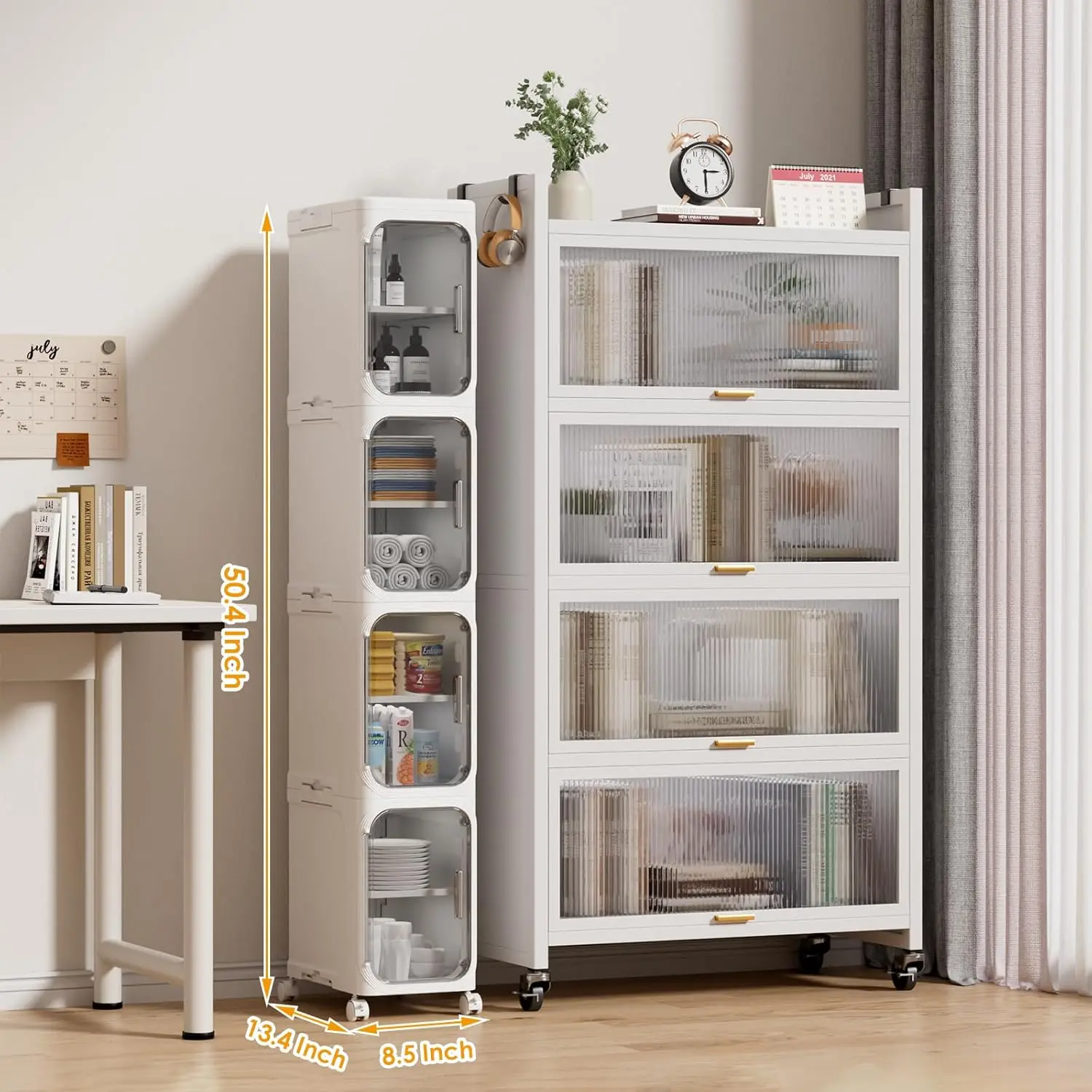 Black White Slim Storage Cabinet No Installation Foldable Movable With Wheels Magnetic Transparent Door Waterproof Dustproof Small Space Large Capacity Organizer 2  360