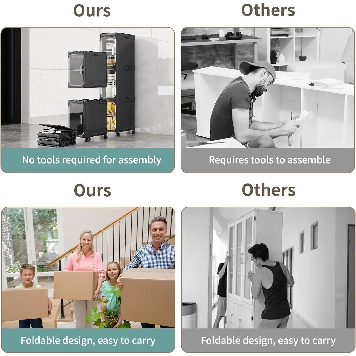 ·Tool-free installation, foldable and stackable, easy to store when not in use; with magnetic door, dust-proof and anti-fall