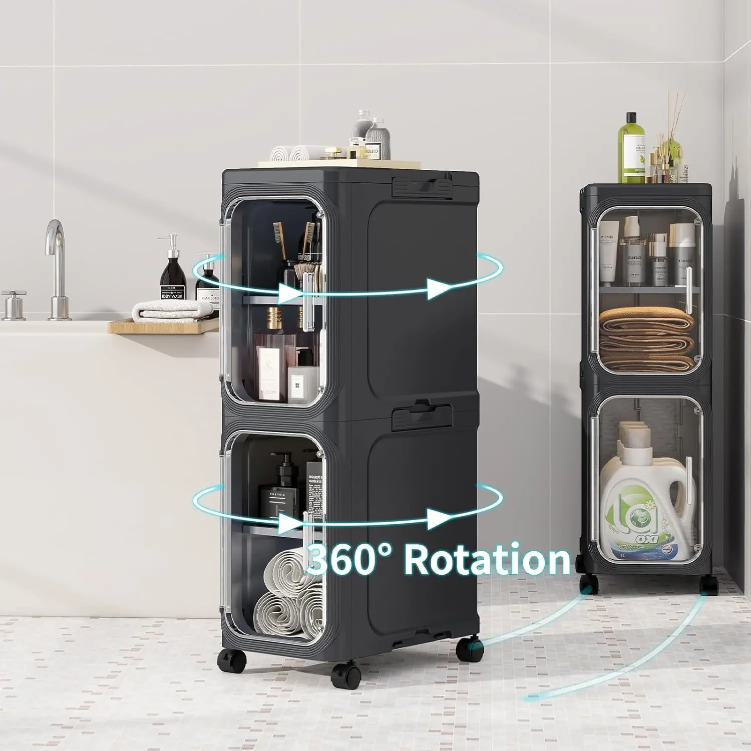 5. Black White Slim Storage Cabinet No Installation Foldable Movable With Wheels Magnetic Transparent Door Waterproof Dustproof Small Space Large Capacity Organizer 2 360