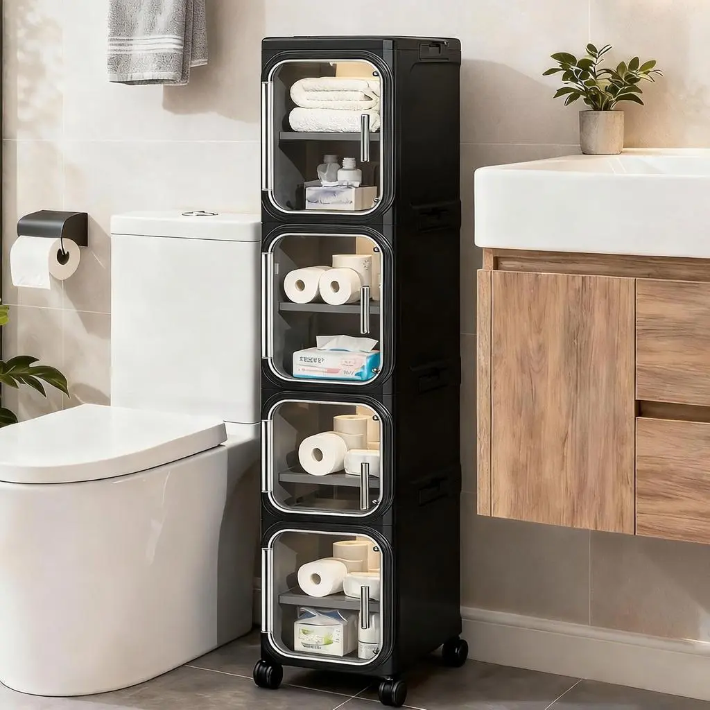 Black White Slim Storage Cabinet No Installation Foldable Movable With Wheels Magnetic Transparent Door Waterproof Dustproof Small Space Large Capacity Organizer 2  360Black White Slim Storage Cabinet No Installation Foldable Movable With Wheels Magnetic Transparent Door Waterproof Dustproof Small Space Large Capacity Organizer 2  360