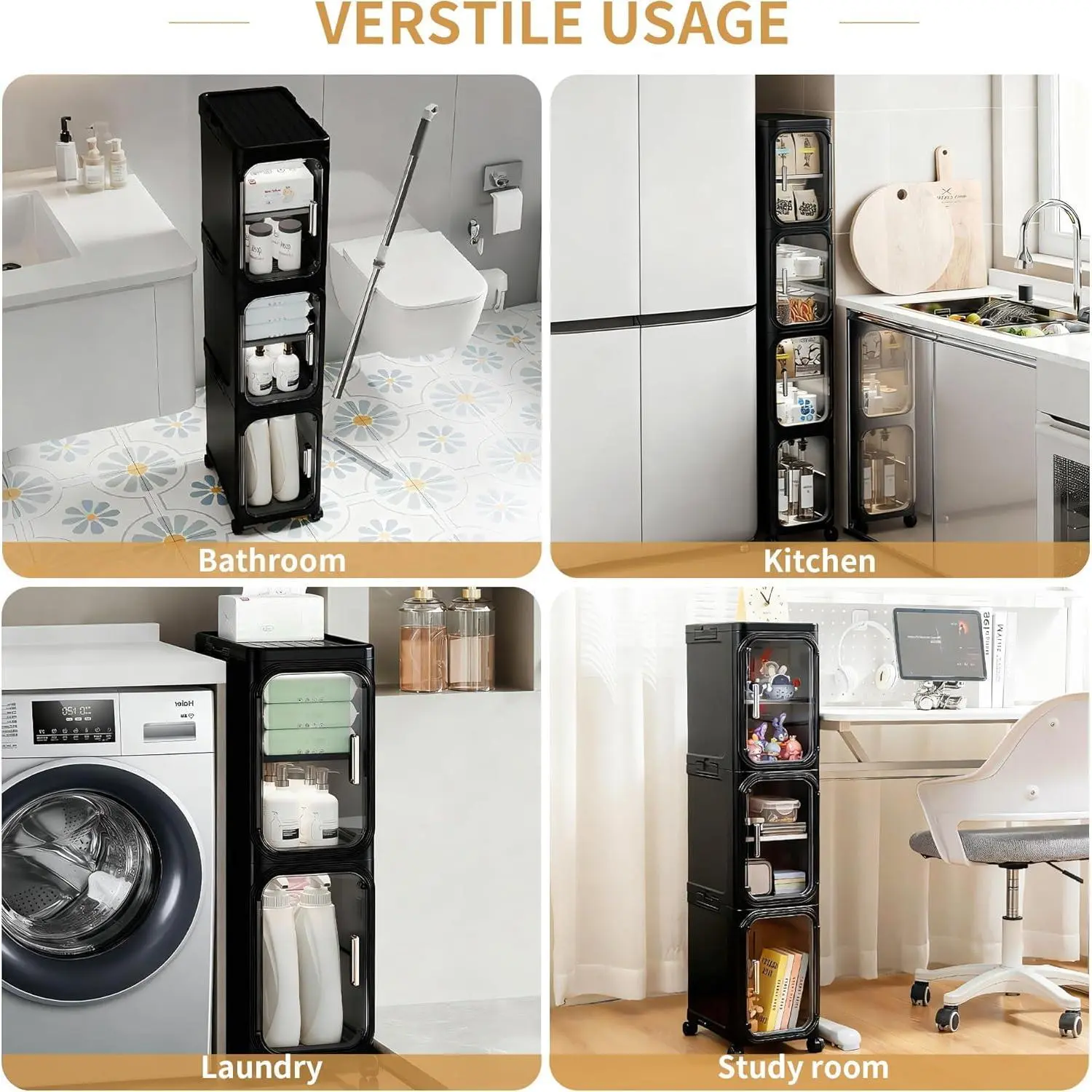 ·Suitable for narrow gap storage, toilet side, kitchen corner, bedroom corner, etc.; can be used as shoe rack, daily necessities storage cabinet, small item storage