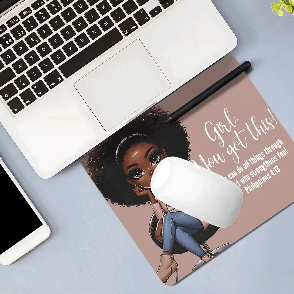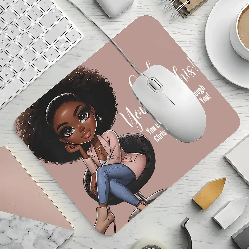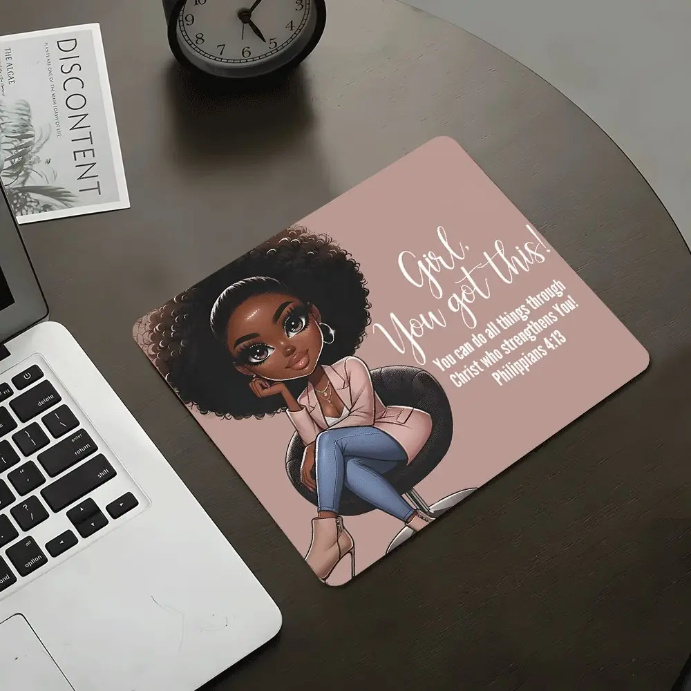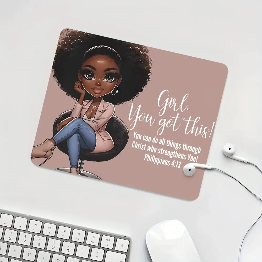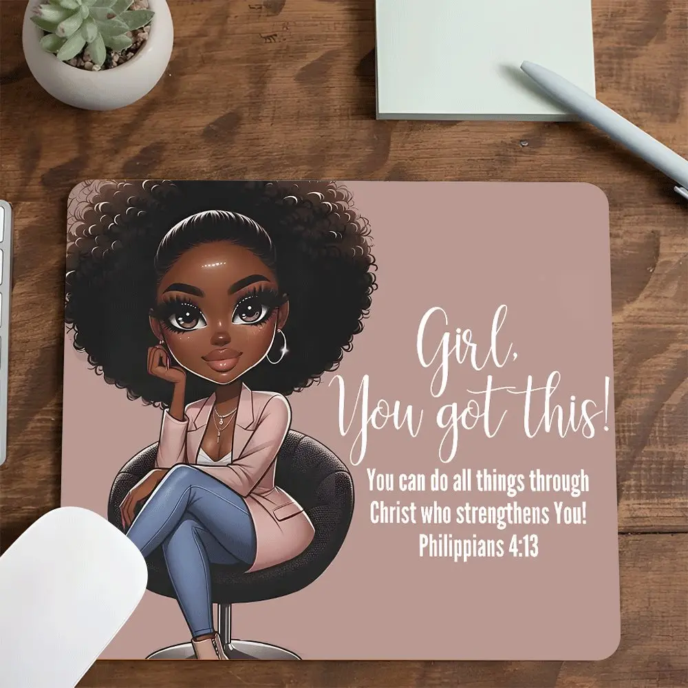 Girl, you got this Black Woman Square mouse pad,Aesthetic Desktop Decorative Protective Pad, Rubber Anti-slip Lockedge Work Pad, Small Size Suitable for Laptop, Desktop Computer Games, Work, Family