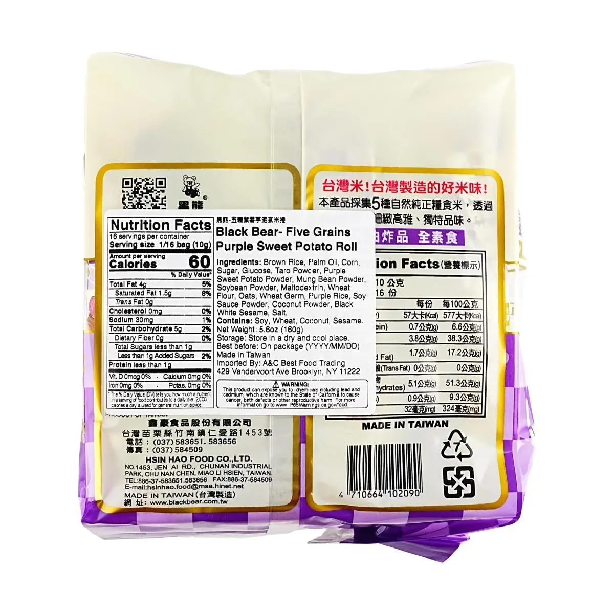 Indulge in the delicious and healthy BLACKBEAR Taiwan Purple Sweet Potato Taro Rice Rolls! 🍠💜 Made with wholesome grains like brown rice, these crispy rolls are a perfect guilt-free snack. Enjoy the unique blend of sweet potato and taro flavors in every bite. 😋