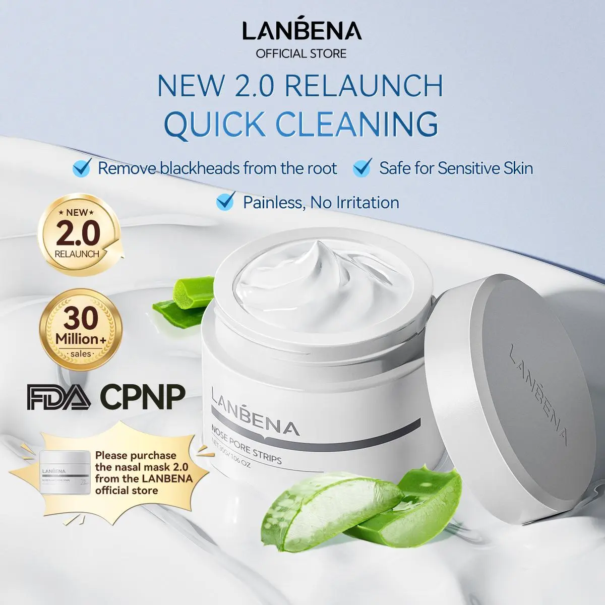 LANBENA NOSE PLANTS PORE STRIPS is your solution for removing blackheads, deep cleaning, shrinking pores, and absorbing oil. With its natural ingredients and enhanced adsorption ability, it leaves your skin clean, clear, and radiant.