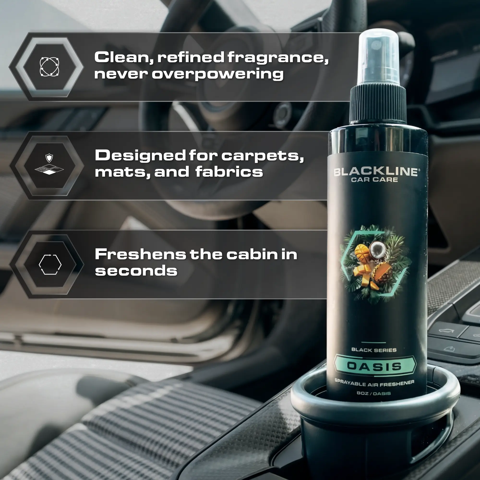Transform your driving experience with BLACKLINEās 8oz Air Freshener, the ultimate solution for maintaining a fresh, luxurious atmosphere in your vehicle. With an array of captivating scents, each spray delivers a lasting fragrance that enhances your carās ambiance and eliminates unwanted odors. Whether for daily commutes or special occasions, BLACKLINE air fresheners are the perfect companion for car lovers who value quality and elegance.