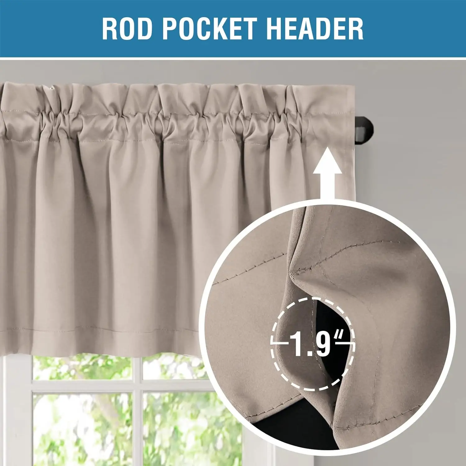 Constructed with 2" header and 3" rod pocket and 2" bottom hem,slips effortlessly across your curtain rod for quick, tool-free installation. Perfect accommodate up to a 1 1/2" curtain rod