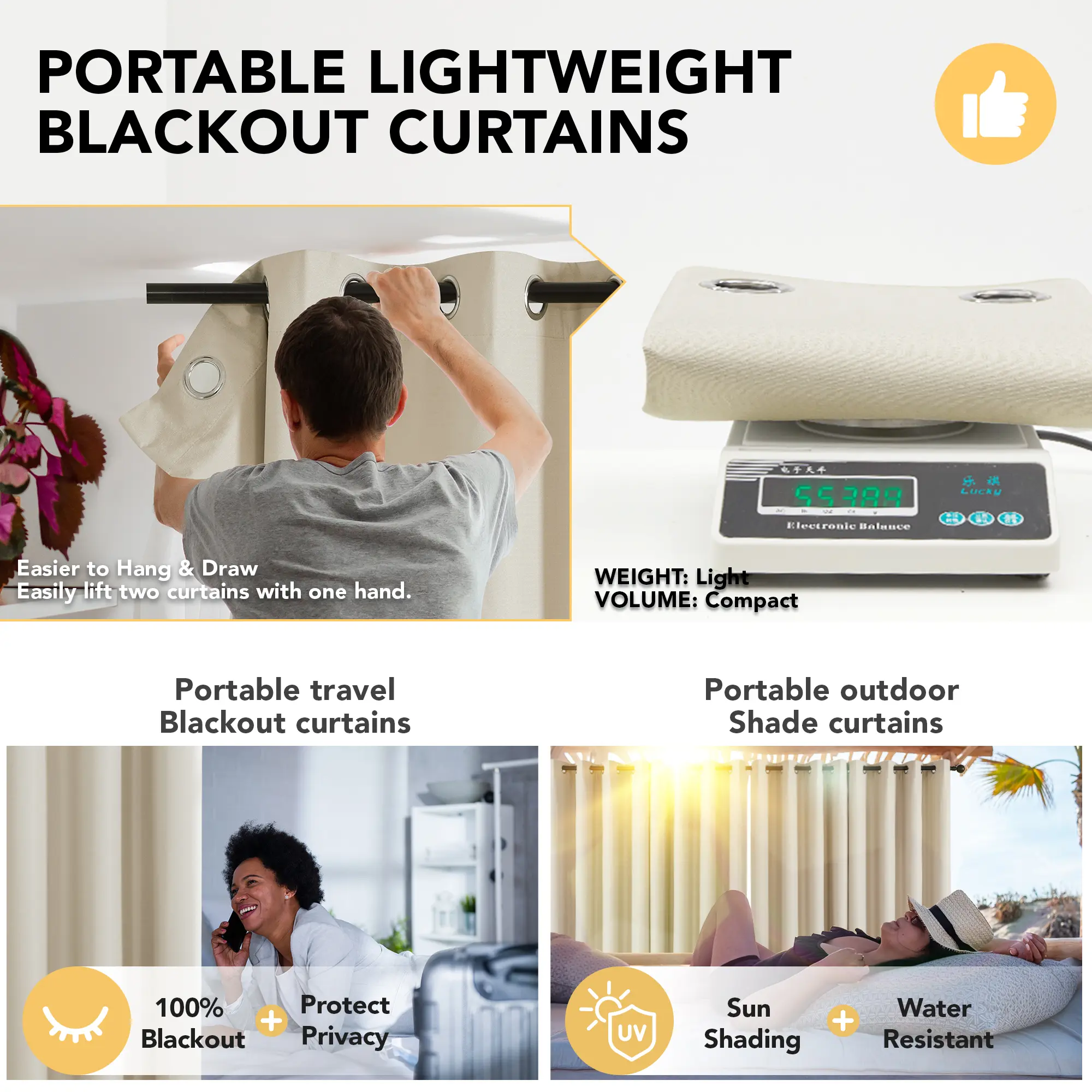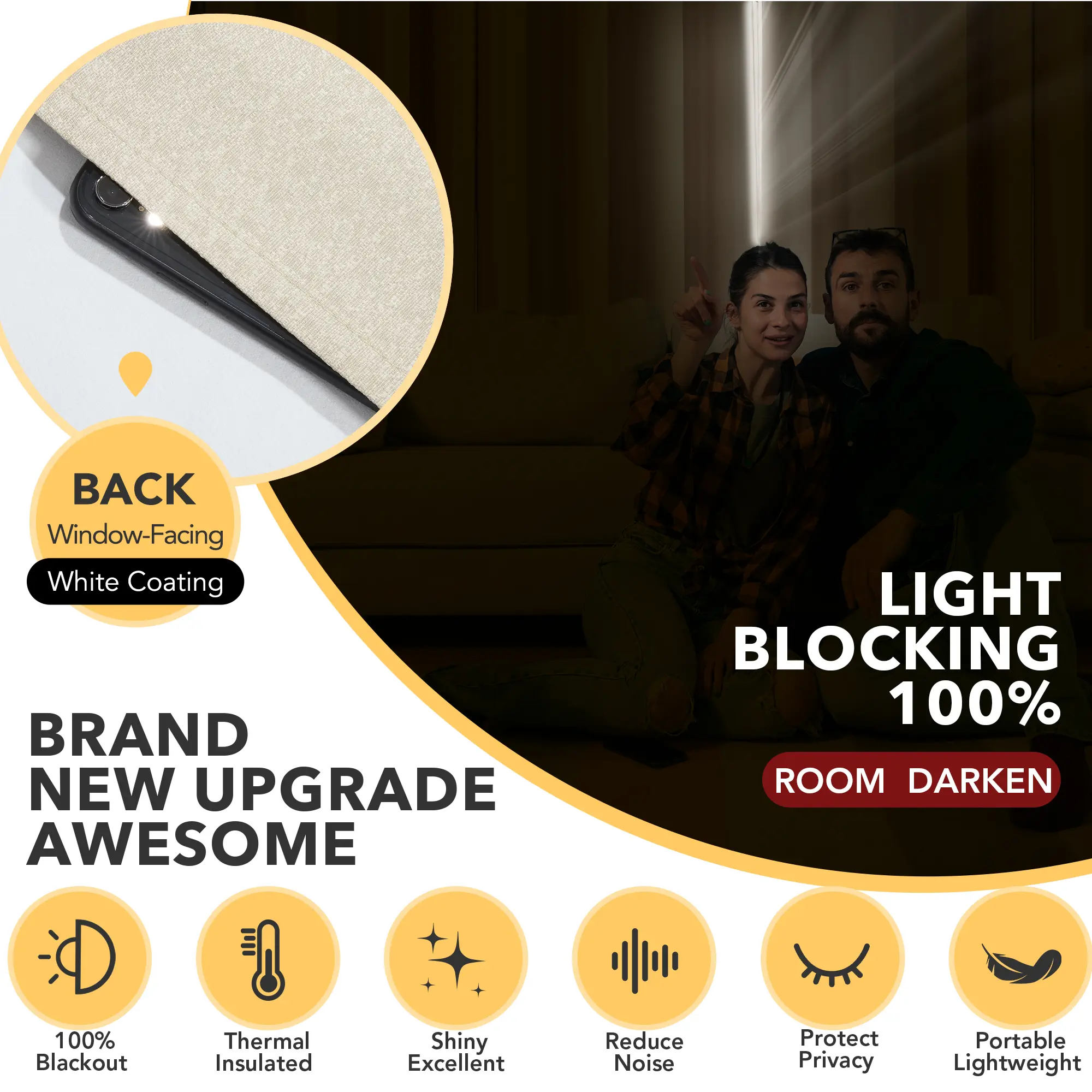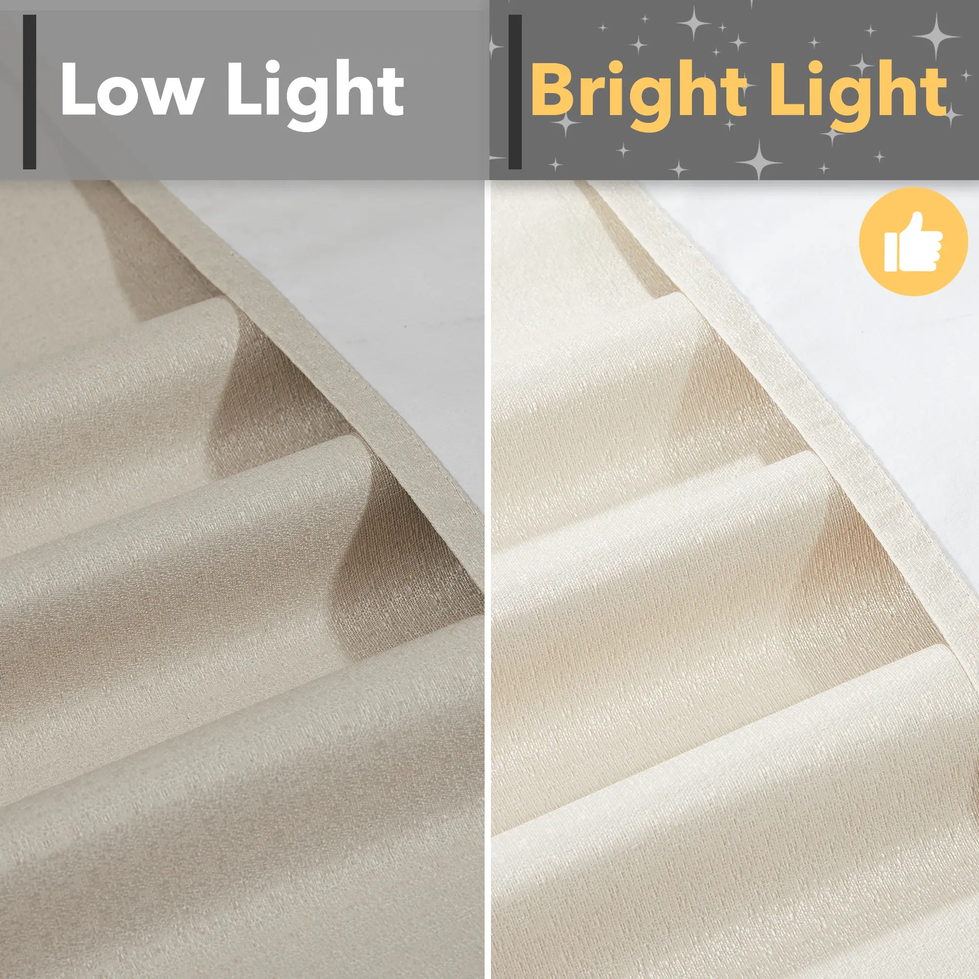 ·Total Blackout: These curtains offer complete blackout from outside light sources in the room. They are perfect for use in the bedroom, living room or kitchen to block out light while also reducing noise levels.