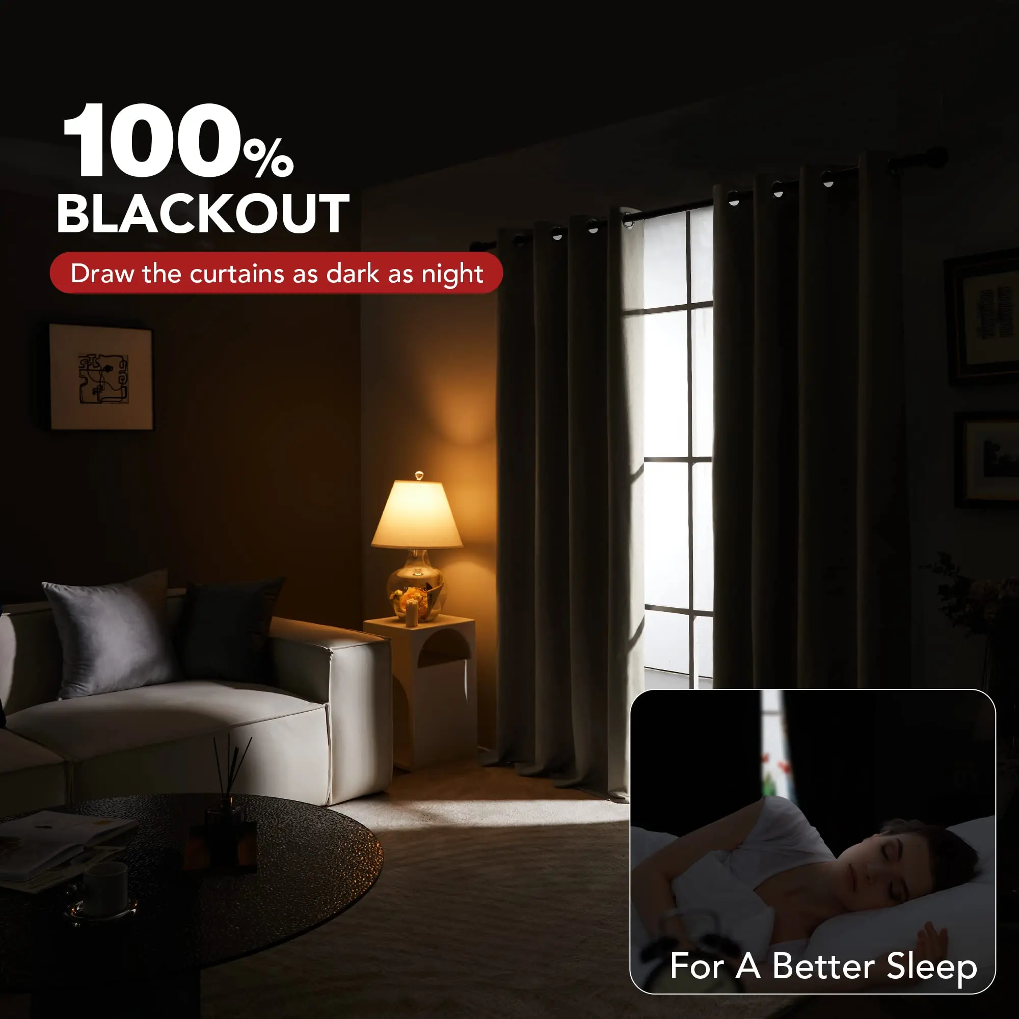 ·Total Darkness, Complete Privacy - Our blackout curtains guarantee uninterrupted sleep by effectively blocking sunlight. Ideal for bedrooms, living spaces, and even kids' rooms, these curtains create a cocoon of darkness that promotes deep, restful slumber. Say goodbye to early morning sunbeams and nosy neighbors; our curtains ensure complete privacy, allowing you to enjoy your personal space to the fullest.