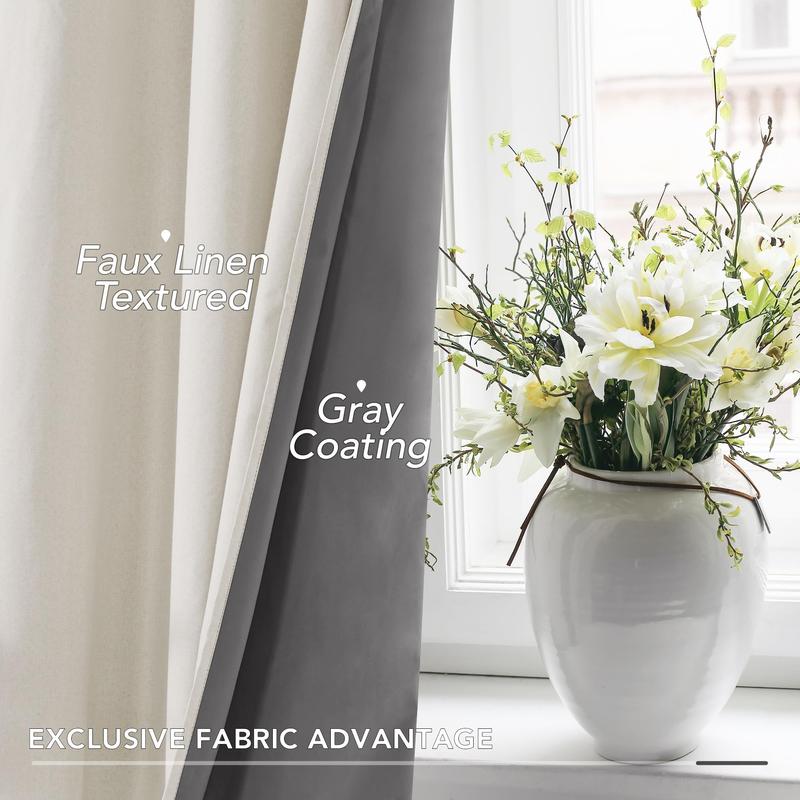 ·Linen Elegance, Lasting Quality - Embrace the timeless charm of our Deconovo linen blackout curtains, meticulously crafted from top-tier 100% polyester. This durable material not only promises longevity but also infuses a touch of farmhouse allure into your living spaces. With a grey-coated backside, these curtains are a testament to both style and substance. They effortlessly elevate your décor while providing a blackout effect that stands the test of time.