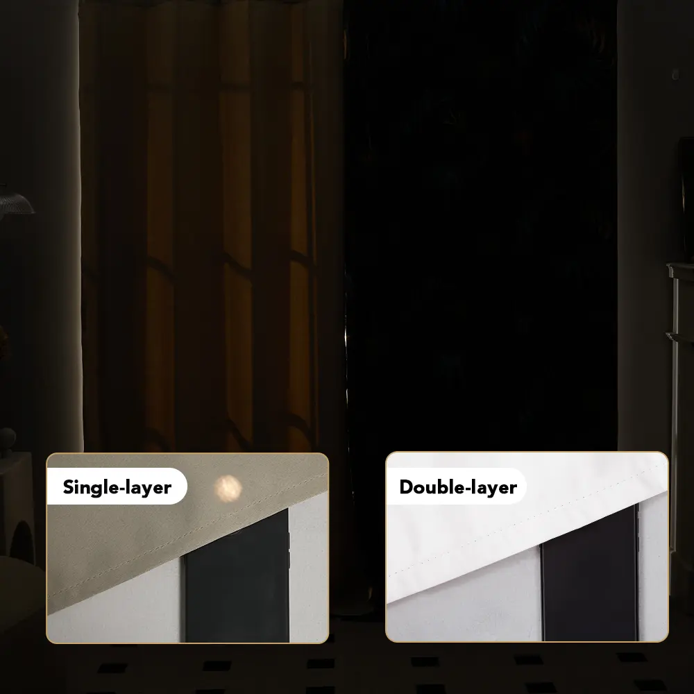 Double-Layer Design – Soft poly-cotton linen texture + white blackout backing
