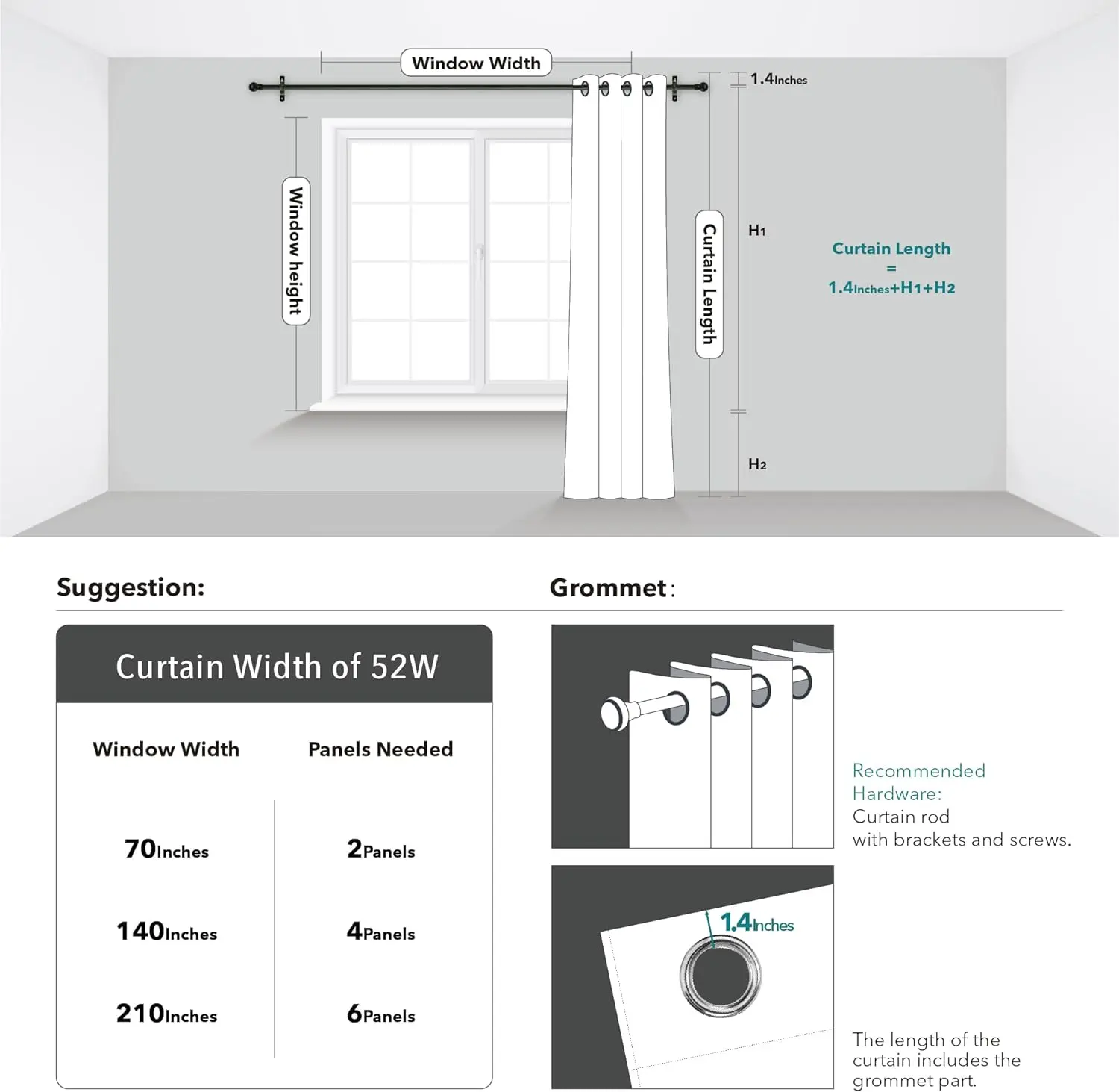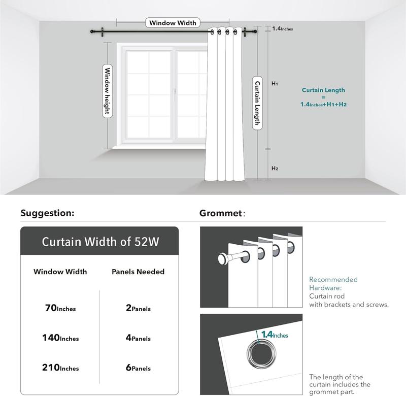·Easy Care: 1.6" silver grommets for smooth installation + machine-washable fabric (low-heat ironing safe).