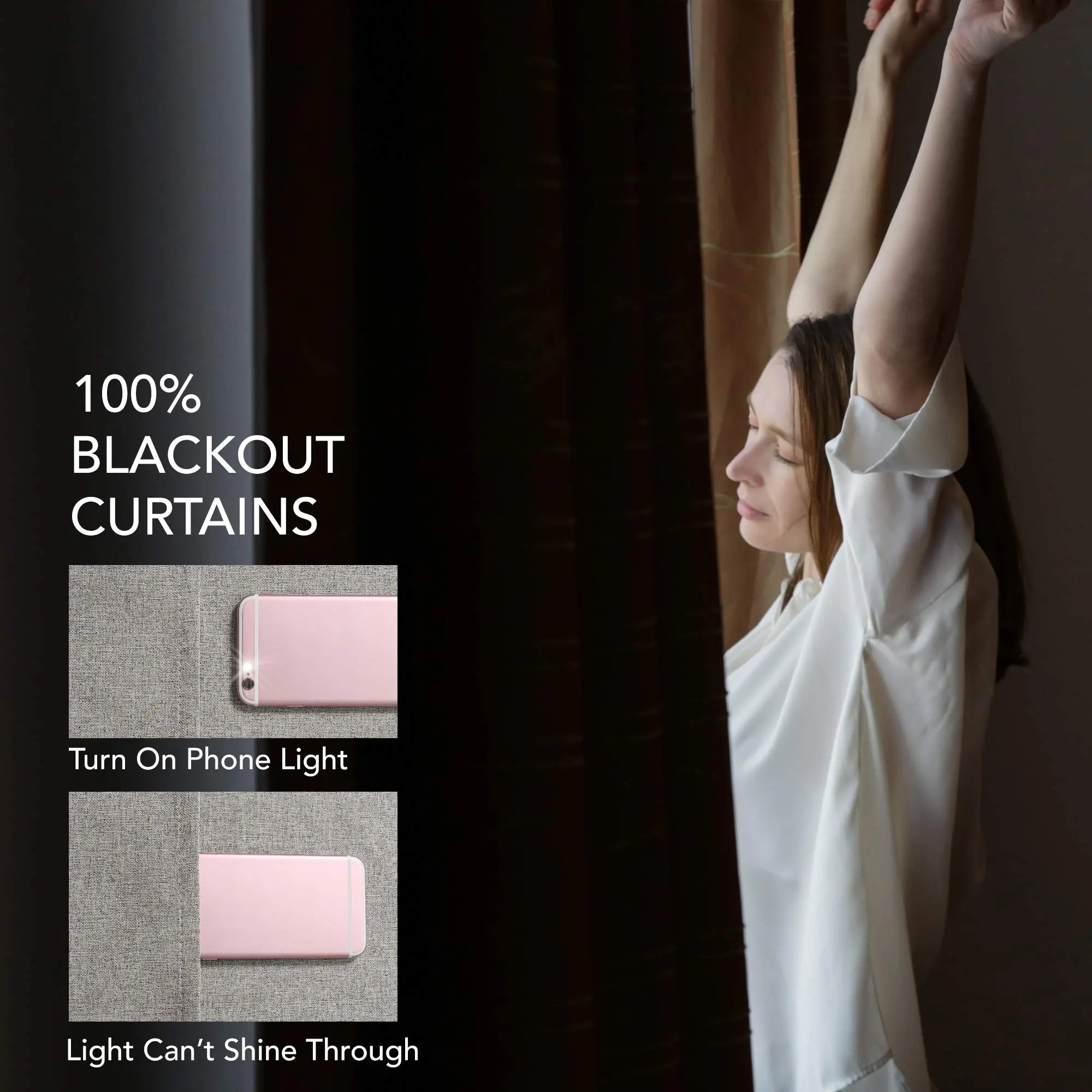 ·PRODUCT INFO: Total blackout curtains. Both sides of the curtains are the same exquisite linen fabric. Each package contains 2 curtain panels.