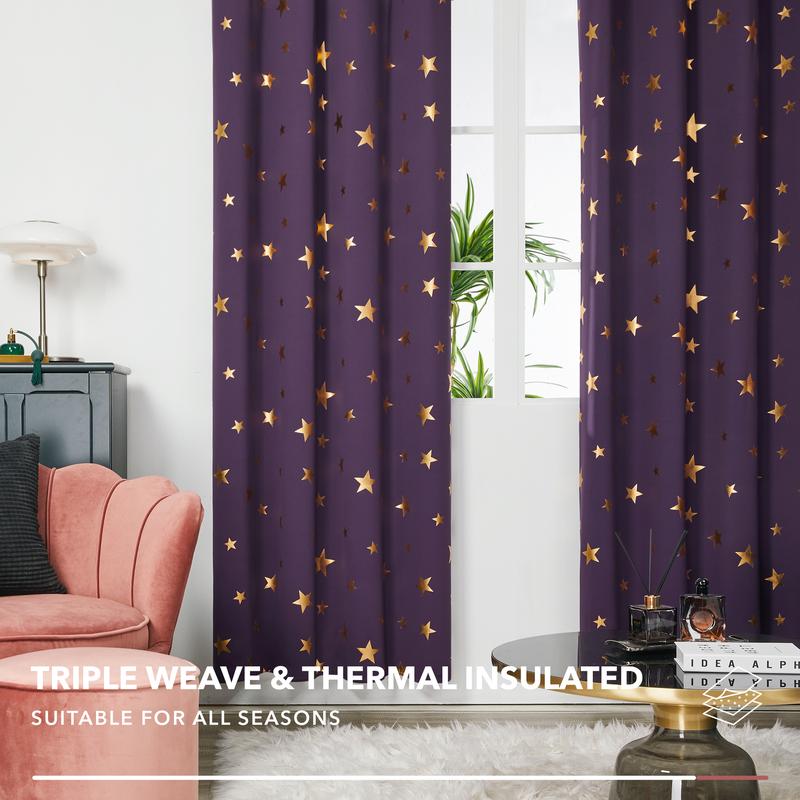 ·DESIGN and TEXTURE - This star pattern blackout curtain features a smooth and elegant fabric with a silky touch and a beautiful drape that bring charm and modernity to your interior