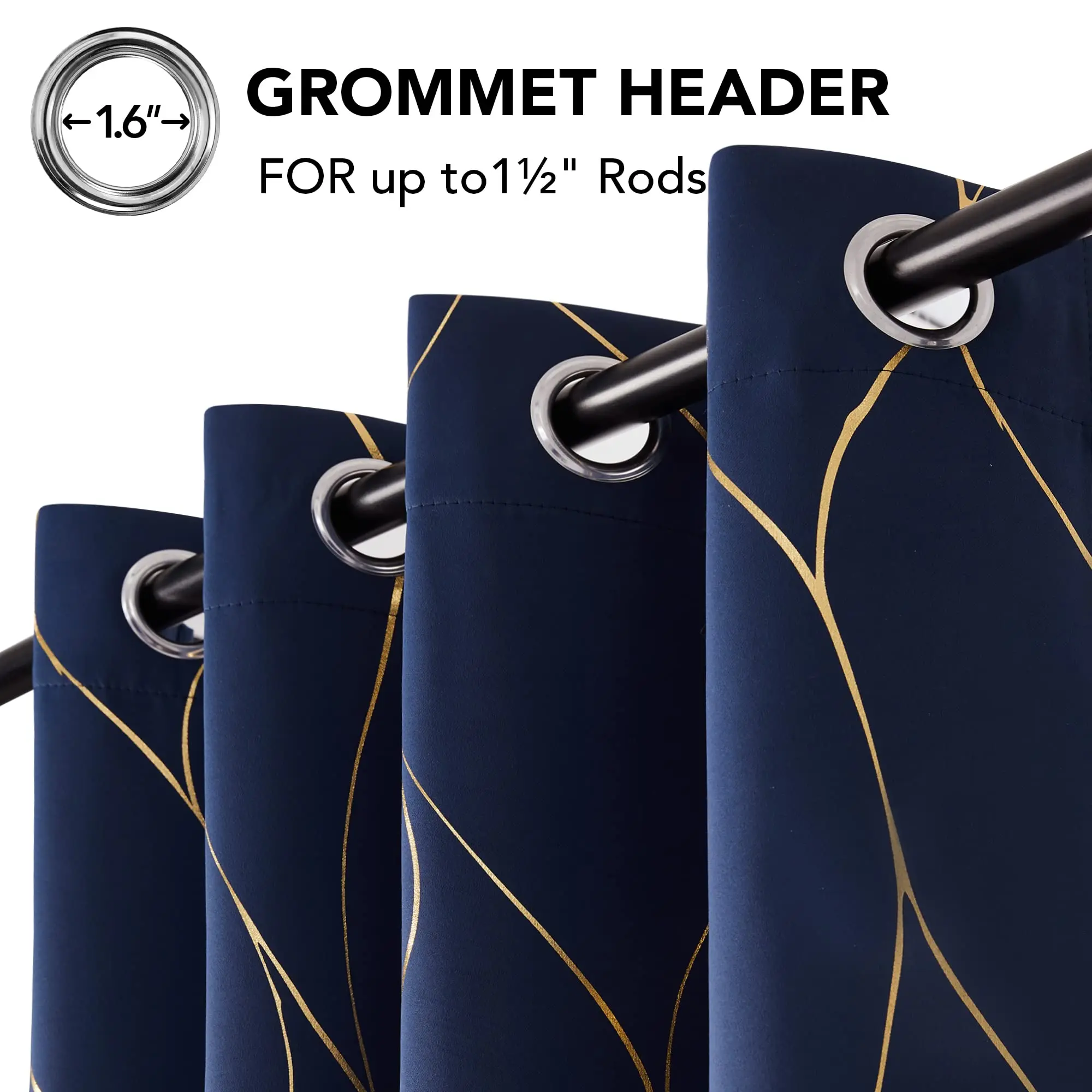 ·PRODUCT INFO - Offered in sets of 2 panels per package. Each panel integrate 6 stainless grommets suitable for most curtain rods on the market for a hassle-free usage.