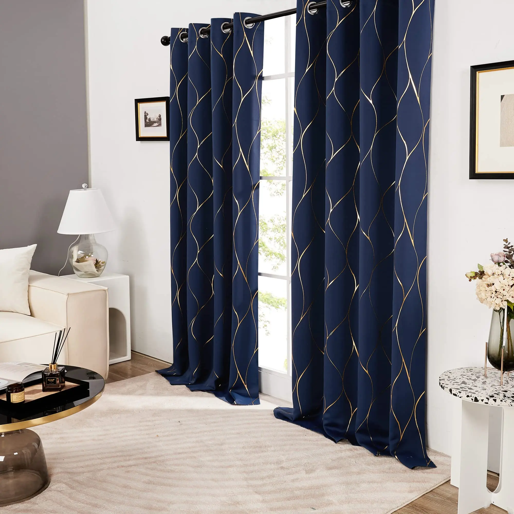 ·BEAUTIFUL DESIGN - Features one of Deconovo’s exclusive patterns designed to add character to your home without clashing with your decor. The gold foil printed wave pattern will fit perfectly your bedroom, living room, home, office, kitchen and kids room.