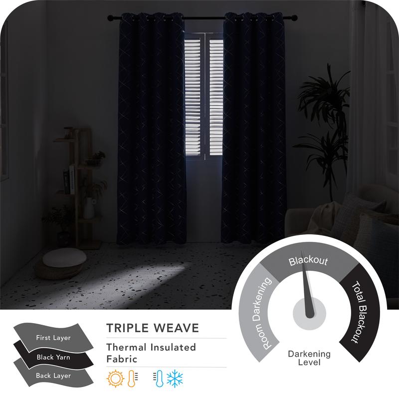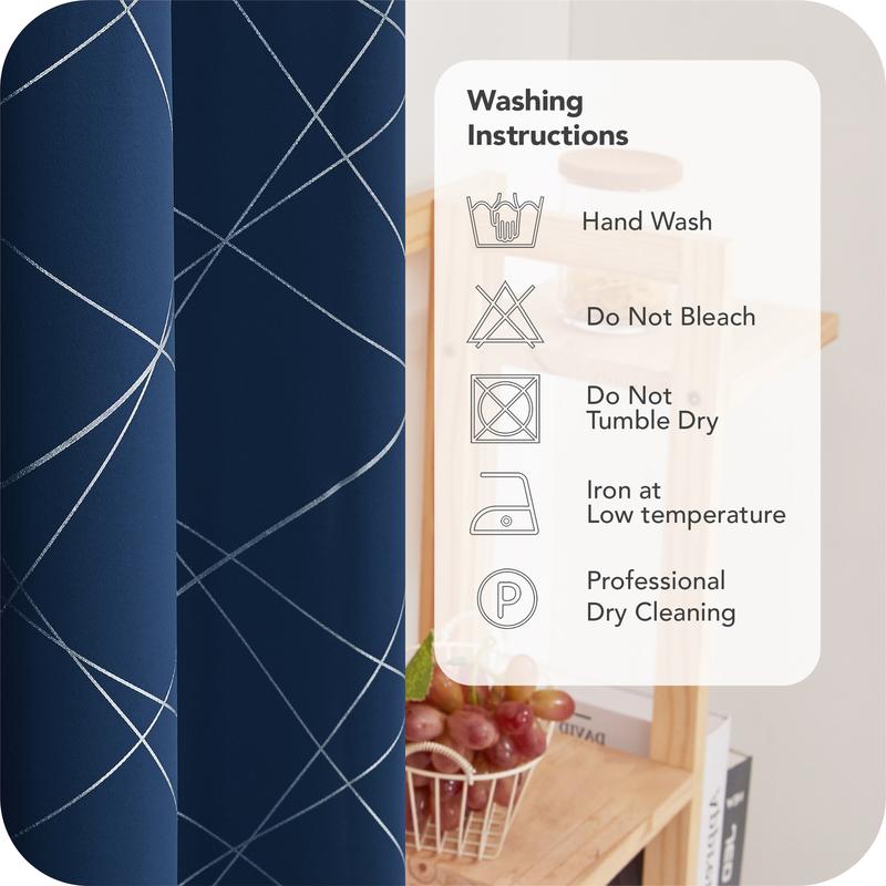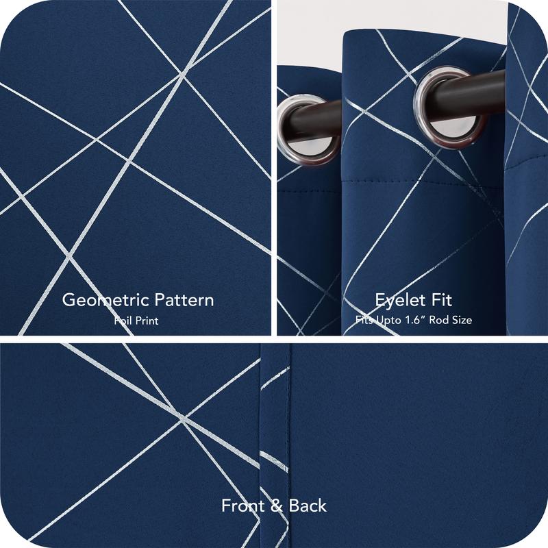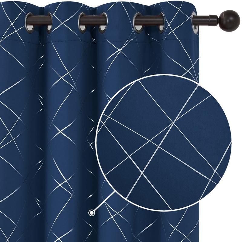 These curtains blend functionality with style. The silver parallel slash adds a modern touch. The black patterned grommet top complements any decor. Upgrade your interior with Deconovo today!