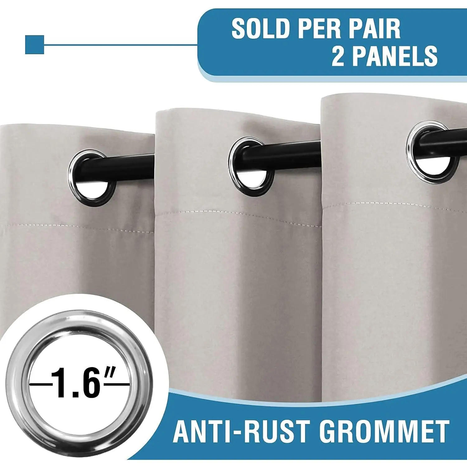 Yes! Each pack contains two blackout functional curtain panels. Each panel has 8 anti rust grommets, inner diameter of grommet is 1.6", fit well with standard or decorative curtain rods