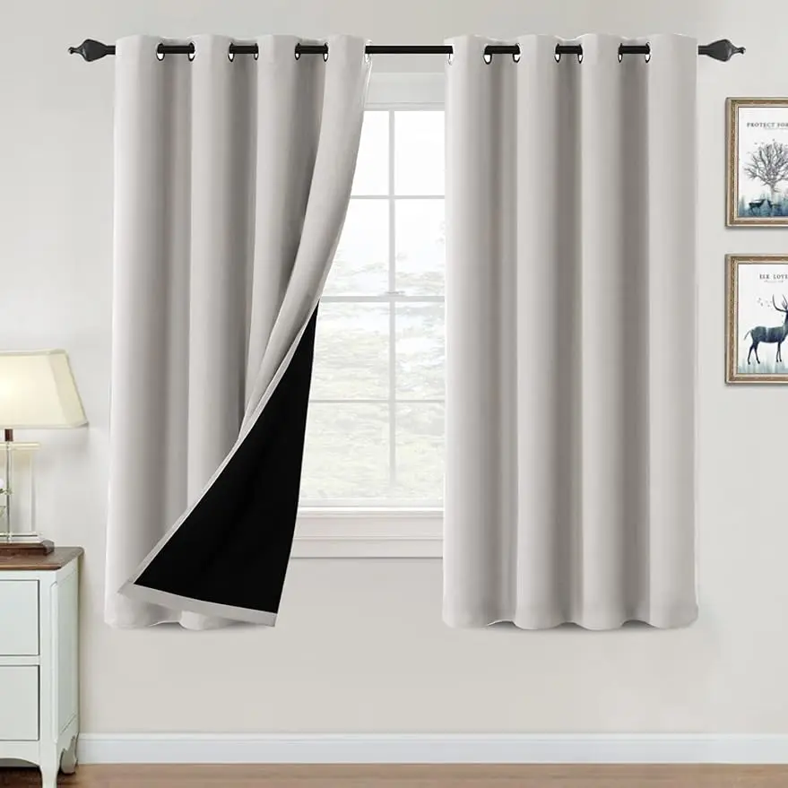 These muti- functional curtains are interwoven by advanced triple weave technology. These magic solid curtain panels have black lining in middle, feature with black backing , definitely can block out 100% bright sunlight and UV ray, turn day into night, enjoy your sweet sleeping and protect your furniture from color fading, providing privacy in your place