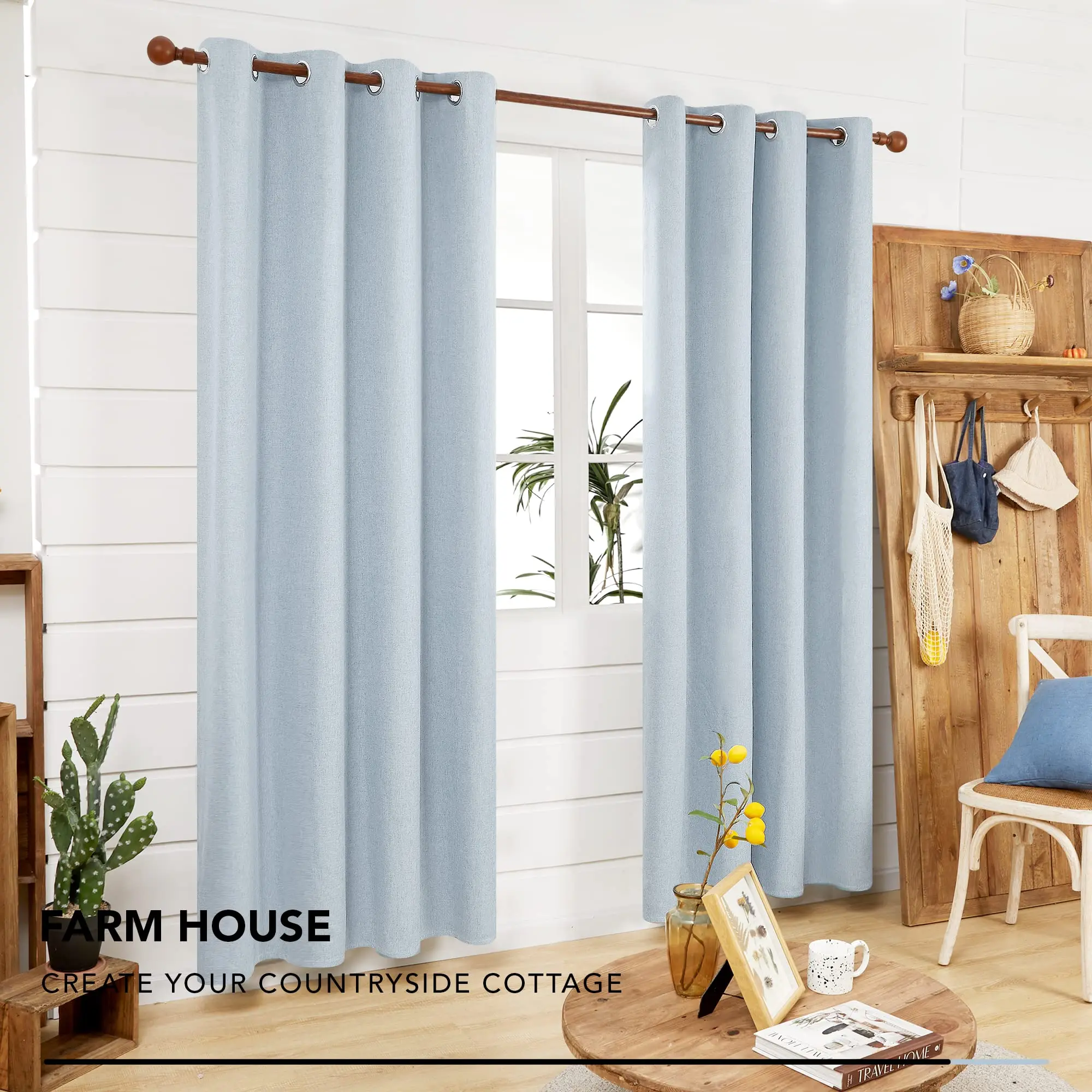Deconovo grommet faux linen total blackout curtains use high quality 100 percentage polyester fabric. These beautiful blackout curtains can protect your privacy, they are ideal for reserved moments. The grommets holes have been made with the perfect size to fit most rods, to ease rods’ insertion and movements. Machine washable and available in 7 sizes and 8 colors.