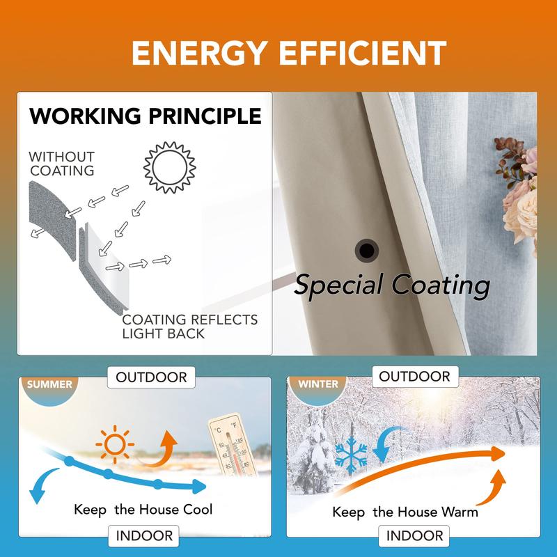 ·Deconovo blackout faux linen thick curtains are energy efficient and they can help saving on energy bills.