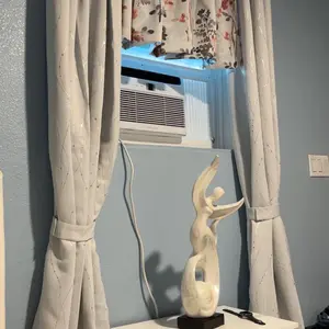 Muy bonita mis cortinas ,me súper encantaron y las acomodé a mi gusto,en el medio le puse otro tipo de cortinas y me encantó,súper feliz porque tiene un material especial y las súper recomiendo,son de un material grueso y si quieres que te entre la luz solo debes ponerle los accesorios 🥰🥰