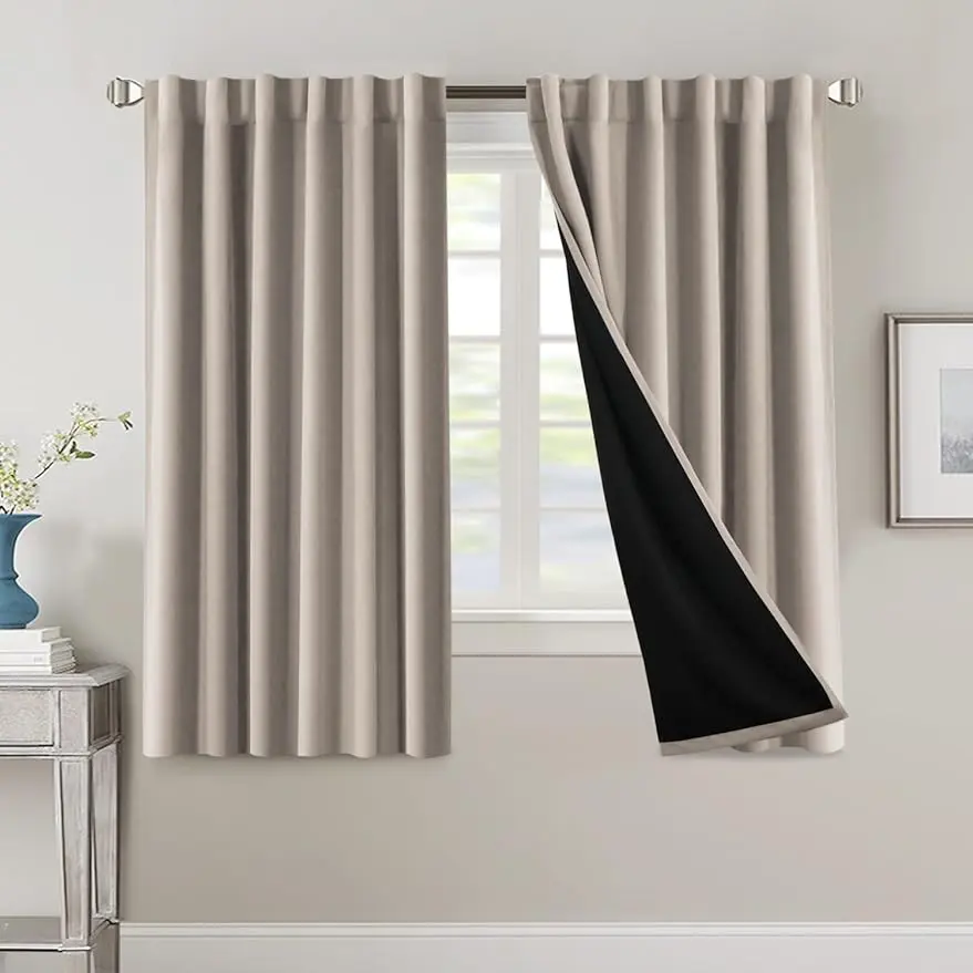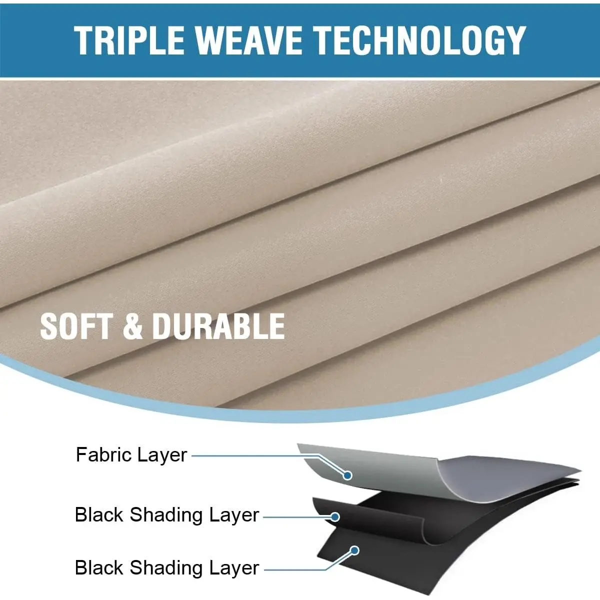 These muti- functional curtains are interwoven by advanced triple weave technology. These magic solid curtain panels have black lining in middle, feature with black backing , definitely can block out 100% bright sunlight and UV ray, turn day into night, enjoy your sweet sleeping and protect your furniture from color fading, providing privacy in your place