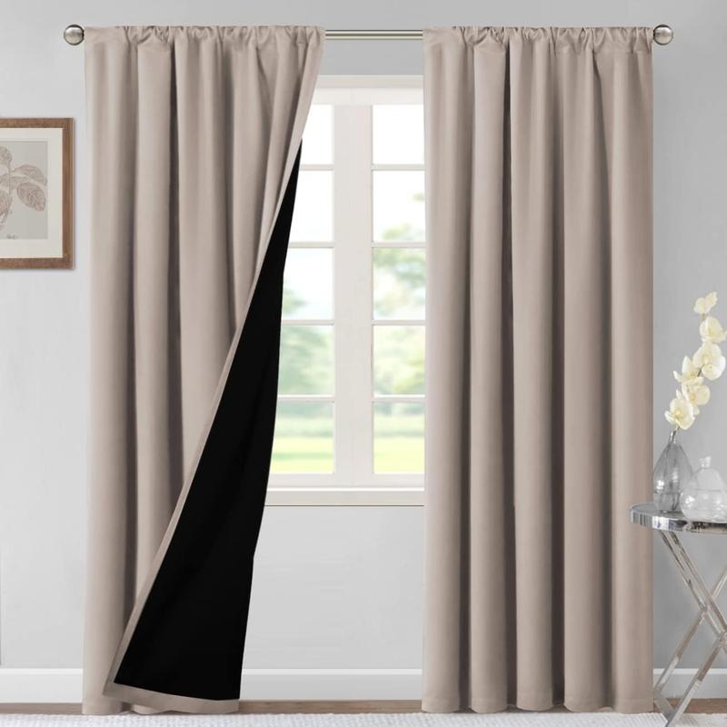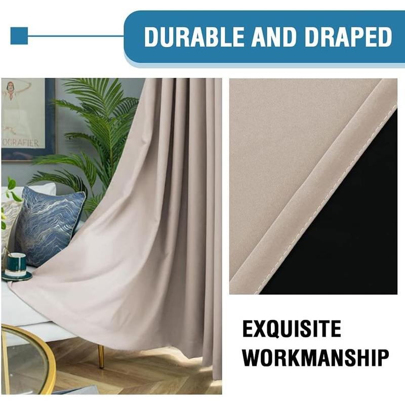 These muti- functional curtains are interwoven by advanced triple weave technology. These magic solid curtain panels have black lining in middle, feature with black backing , definitely can block out 100% bright sunlight and UV ray, turn day into night, enjoy your sweet sleeping and protect your furniture from color fading, providing privacy in your place
