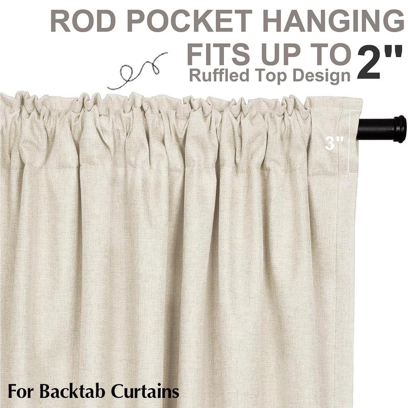 These curtains are advertised as LINEN AND THEY ARE POLYESTER with a rubber backing! Total scam! I’m pissed! I reached out to the seller and he called them “imitation linen.” This is false advertising. They have a gray rubber backing too which is ugly.