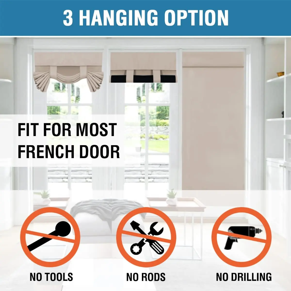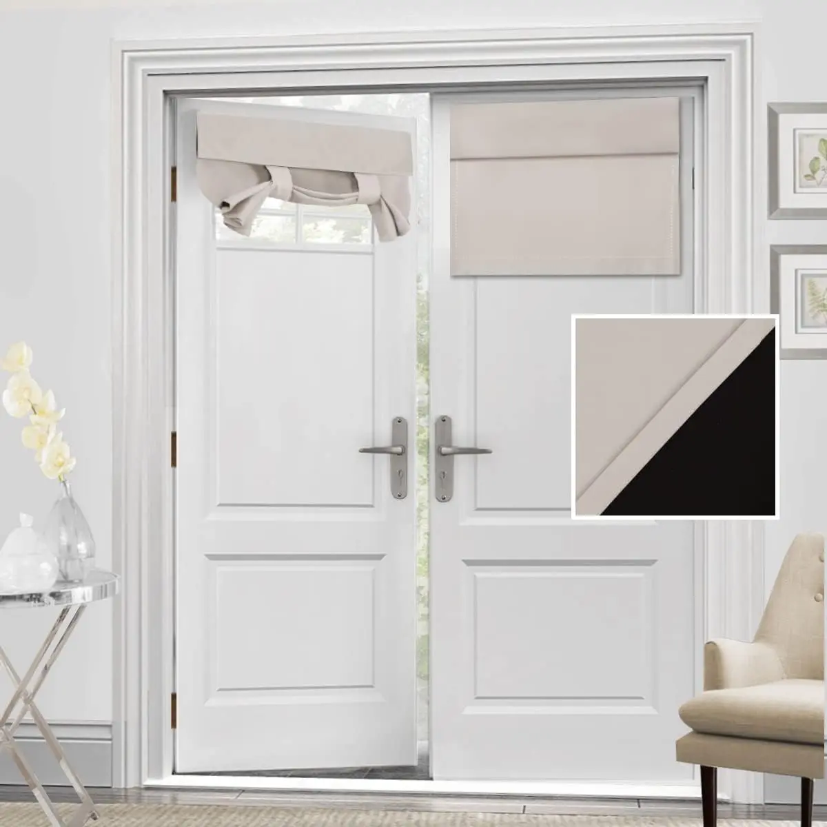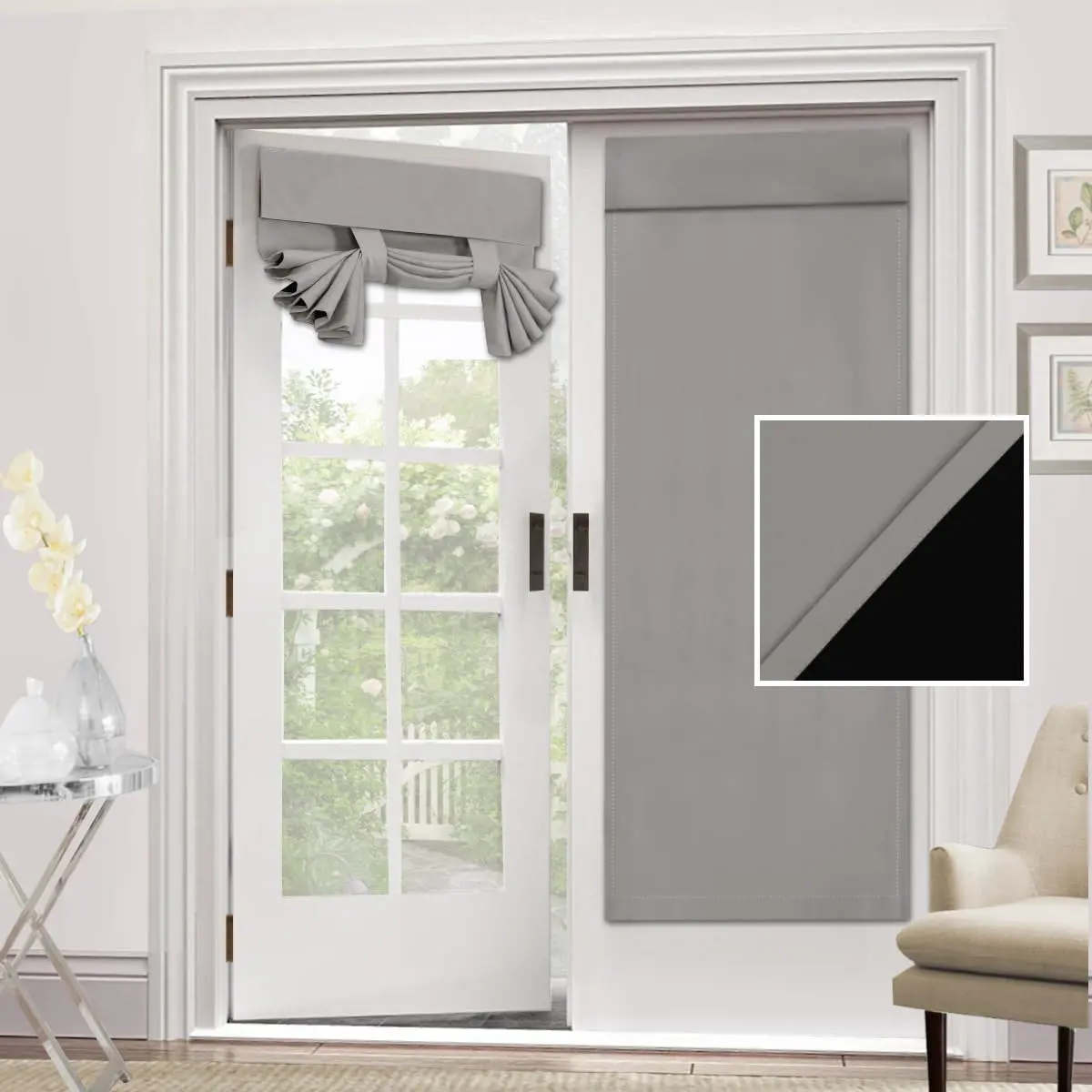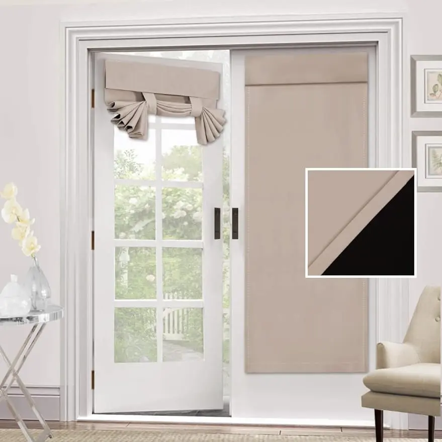 H.VERSAILTEX 100% Blackout French Door Curtain 1 Panel Privacy French Door Blinds Light Blocking Curtain for Sliding Glass Door Thermal Insulated Tie Up Shade
