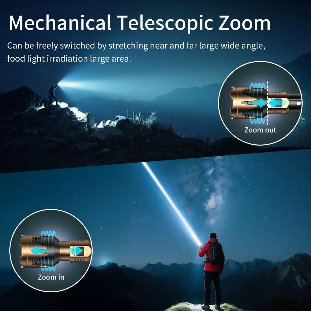 Black Panda Pro High-Brightness Rechargeable Camping Flashlight, Outdoor Searchlight, 5500mAh Battery Capacity, Water resistant , USB Charging, Zoomable Focus