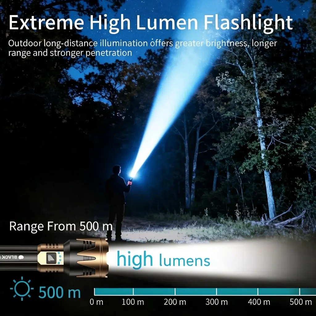 A high-lumen flashlight brings confidence to camping and night work#camping #forest #hiking #safety