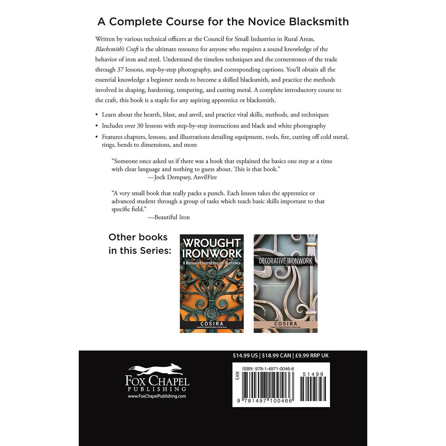 Ever dreamed of crafting your own iron masterpieces? Blacksmith's Craft is your perfect starting hammer! Since 1952, this iconic guide has taught apprentices and artisans the timeless skills of blacksmithing. With 37 comprehensive lessons, you’ll learn everything from setting up your hearth and anvil to mastering essential techniques like drawing down and cleft welds. The book features crisp photography and clear captions that break down complex processes into easy steps, making it ideal for beginners eager to get hands-on. Inside, you’ll find detailed chapters on traditional tools, shaping, hardening, tempering, and cutting metal — all the fundamentals to help you become a skilled blacksmith. This facsimile edition preserves the original’s authenticity, keeping the spirit of classic blacksmithing alive for today’s modern craftsman. Whether you’re starting a new hobby or honing your trade, Blacksmith’s Craft is the go-to source for learning the craft’s core methods. Grab your copy and start forging your own legacy!