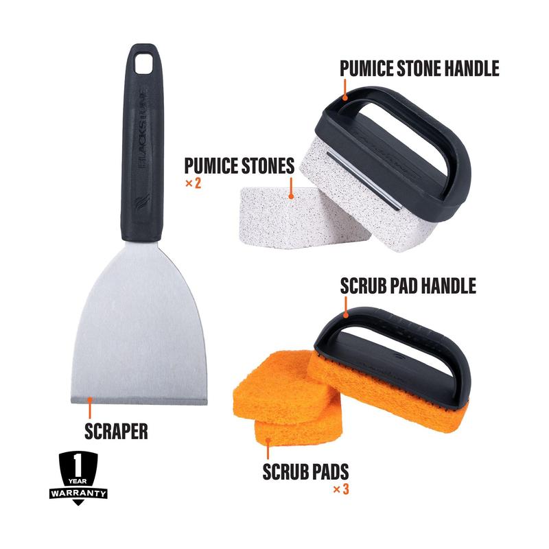 ·Includes three scrub pads, handle, two griddle bricks, handle, and griddle scraper