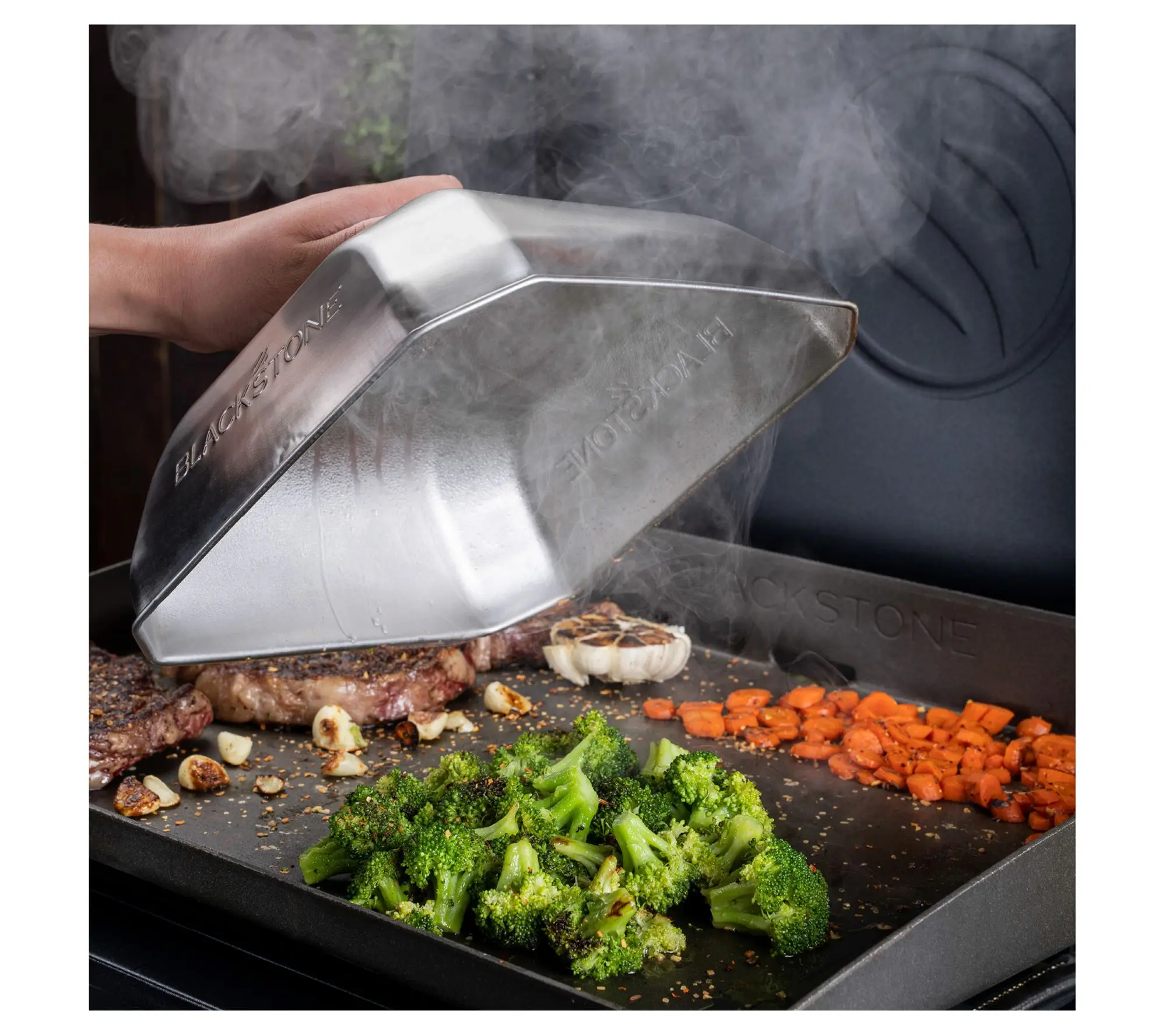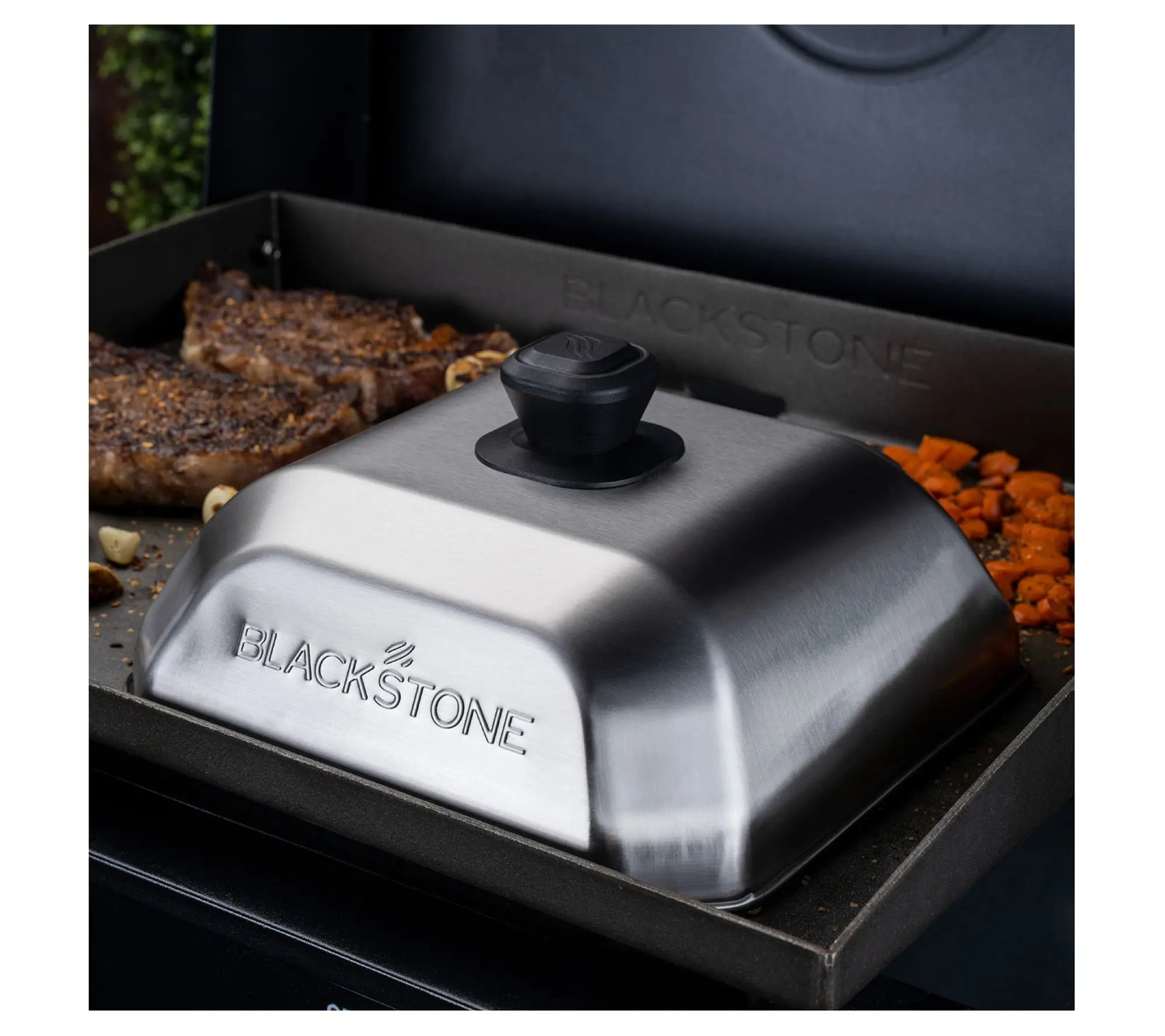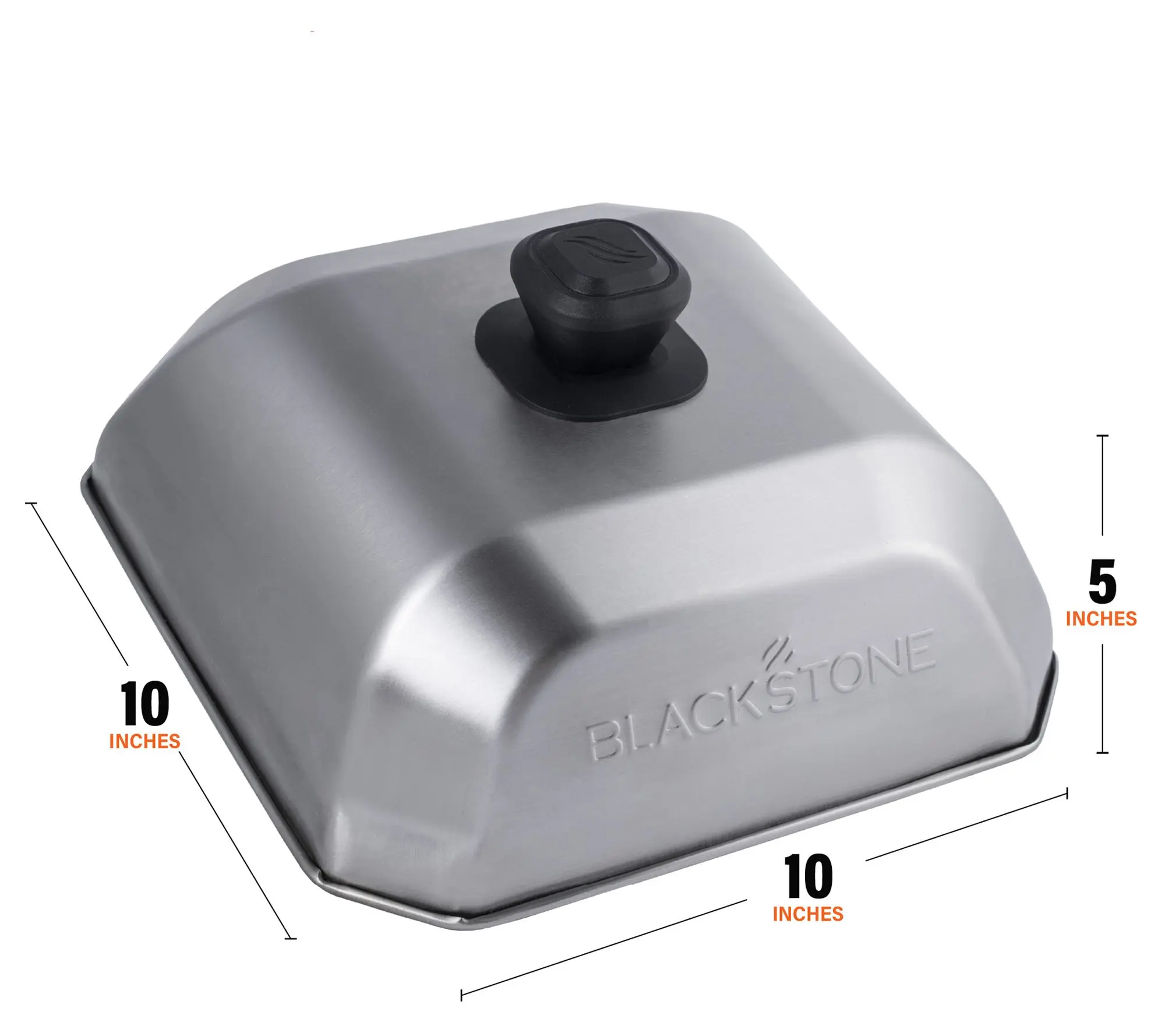 Make every mealtime special with the Blackstone Medium Square Basting Cover, perfect for steaming veggies and melting cheese on your dishes. With a heat-resistant handle ensuring safe and effortless use, and a dishwasher-safe design for easy cleanup, cooking becomes a seamless experience. From Blackstone.