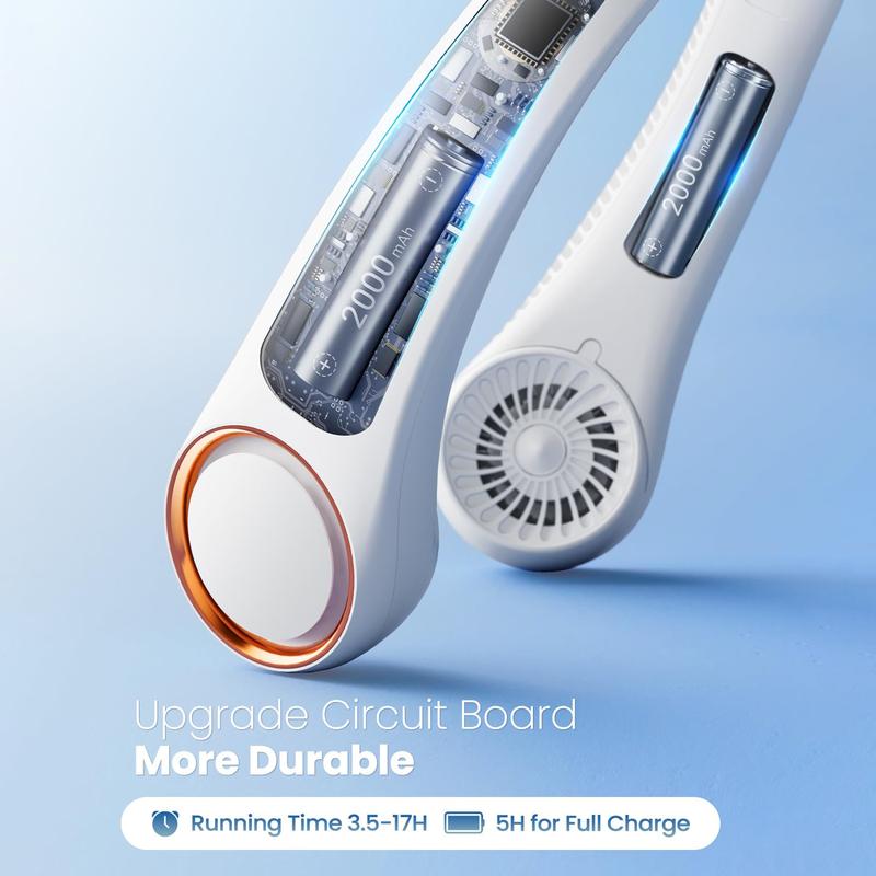 【Hands-free Design & Fashionable】Hand-free neck fan was designed as a headphone to free your hands anywhere; The fashion style makes you look cool and you can take it anywhere in hot weather. Good choice to as a gift for your family.