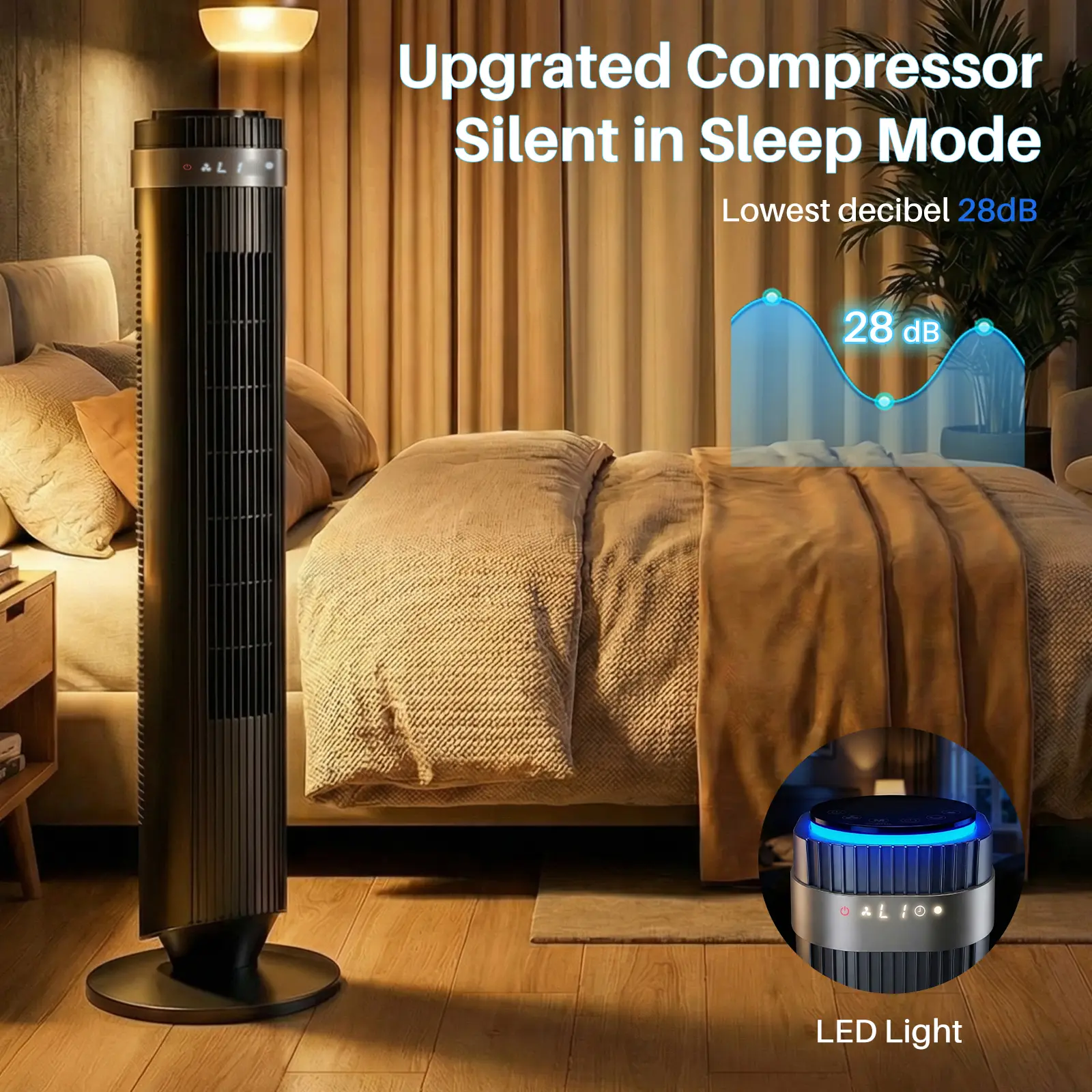 ·Sleep-Level Quiet Comfort: Experience true serenity with this tower fan for bedroom, featuring a minimum 28dB noise level. Display auto-off and gradual wind speed reduction every 30 mins at sleep mode to ensure undisturbed, restful sleep all night long