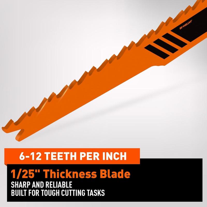 ·Orange Wood Pruning Reciprocating Saw Blades, HCS High speed carbon steel construction for faster cutting wood and added durability
