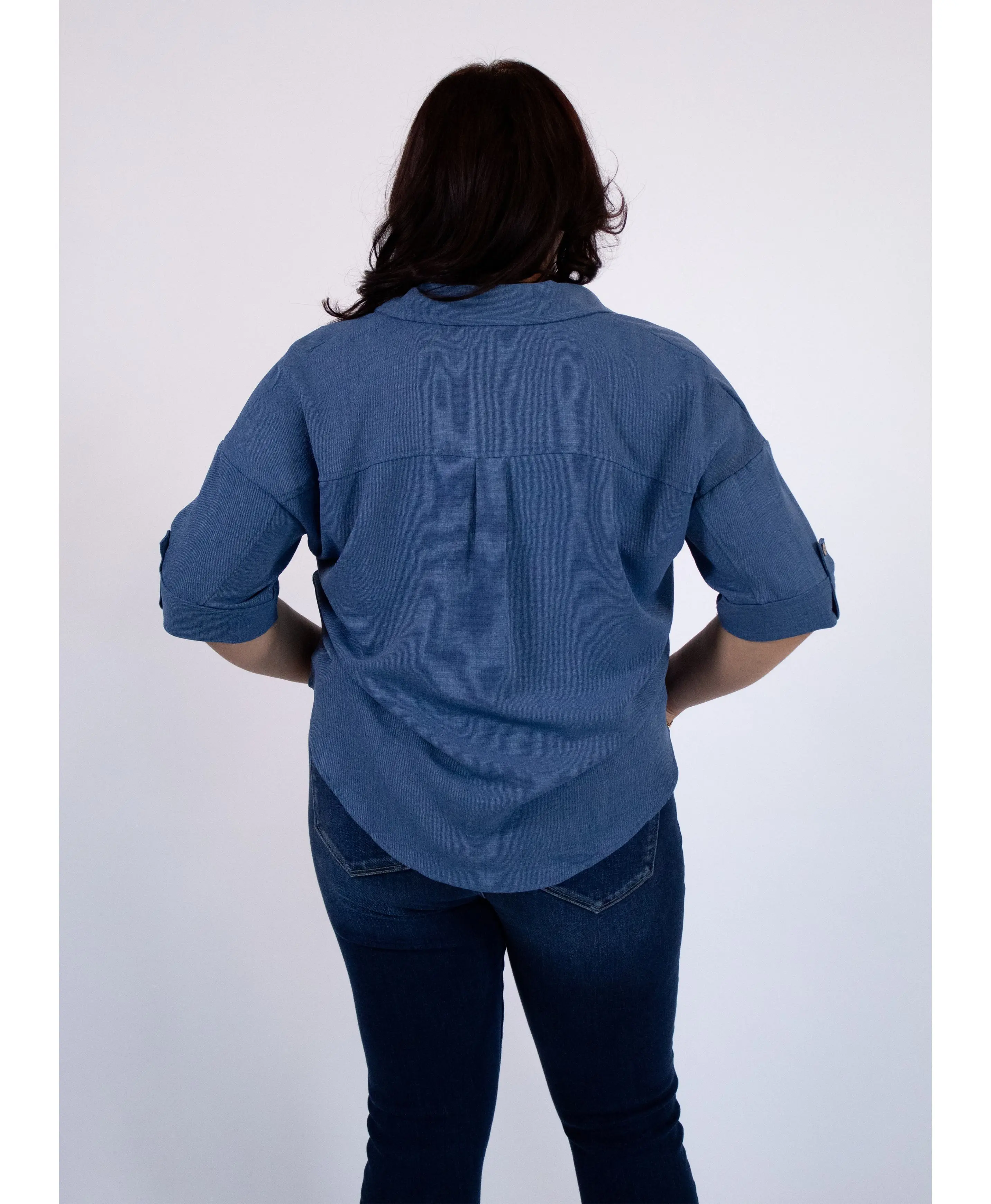 Meet your new go-to essential. The Blake Button Top delivers sophisticated style with practical features designed for real life. The collared V-neck flatters every frame, while the button-down front offers endless styling possibilities. Whether you're dressing it up for work or down for weekend adventures, this piece adapts to your lifestyle.